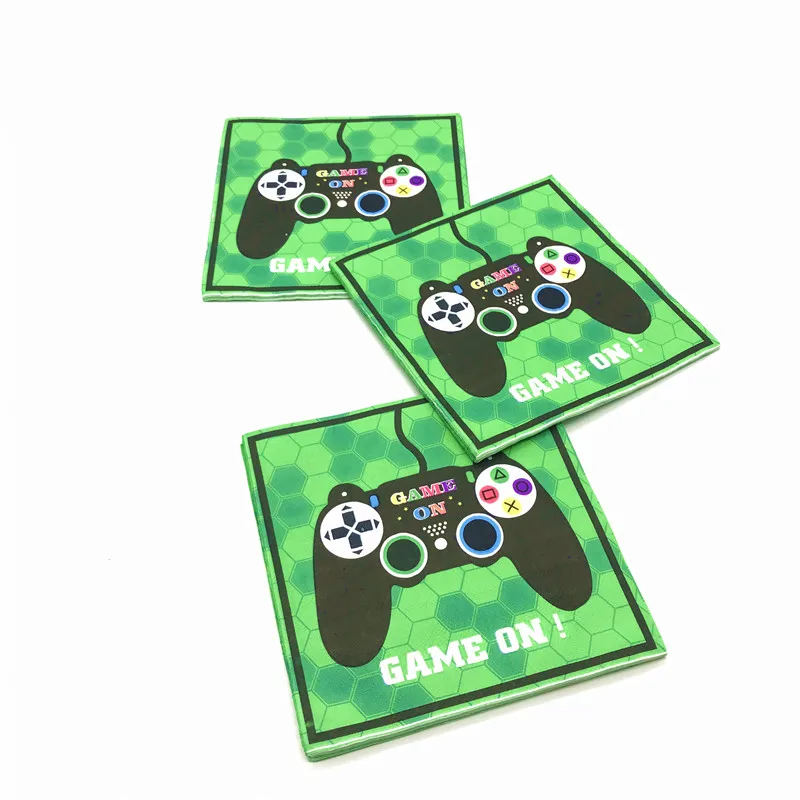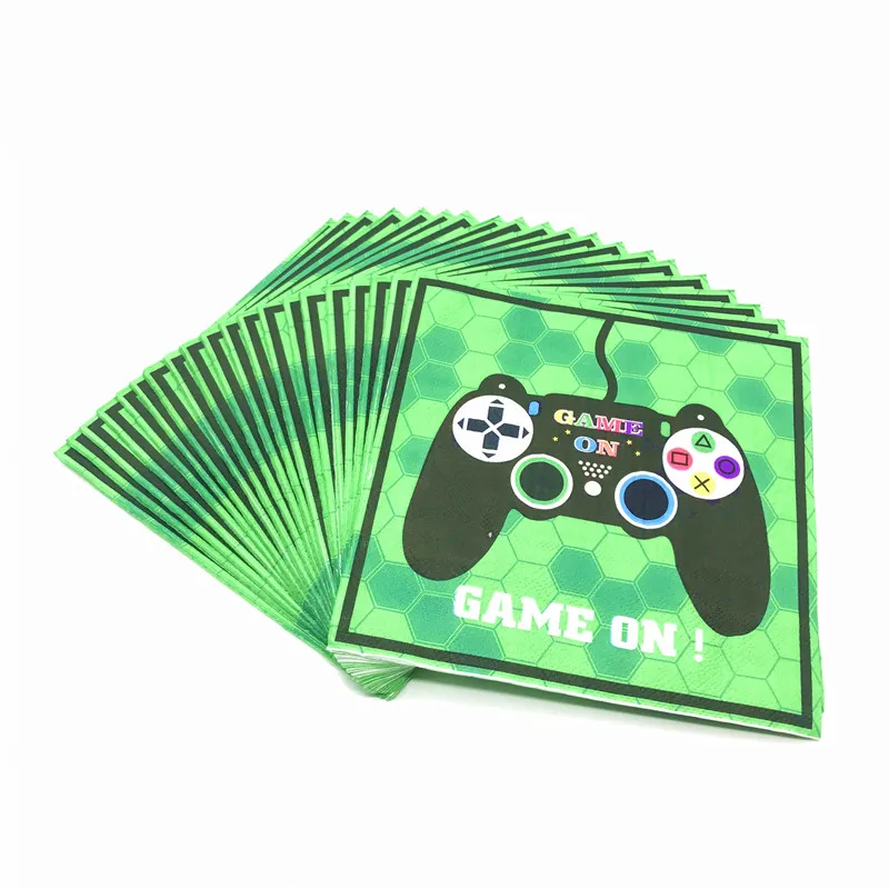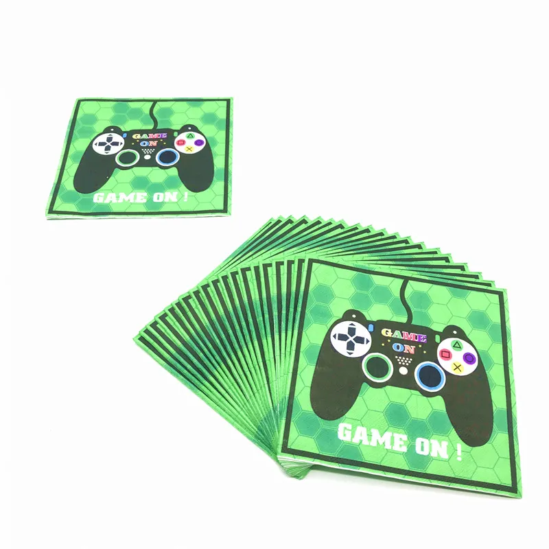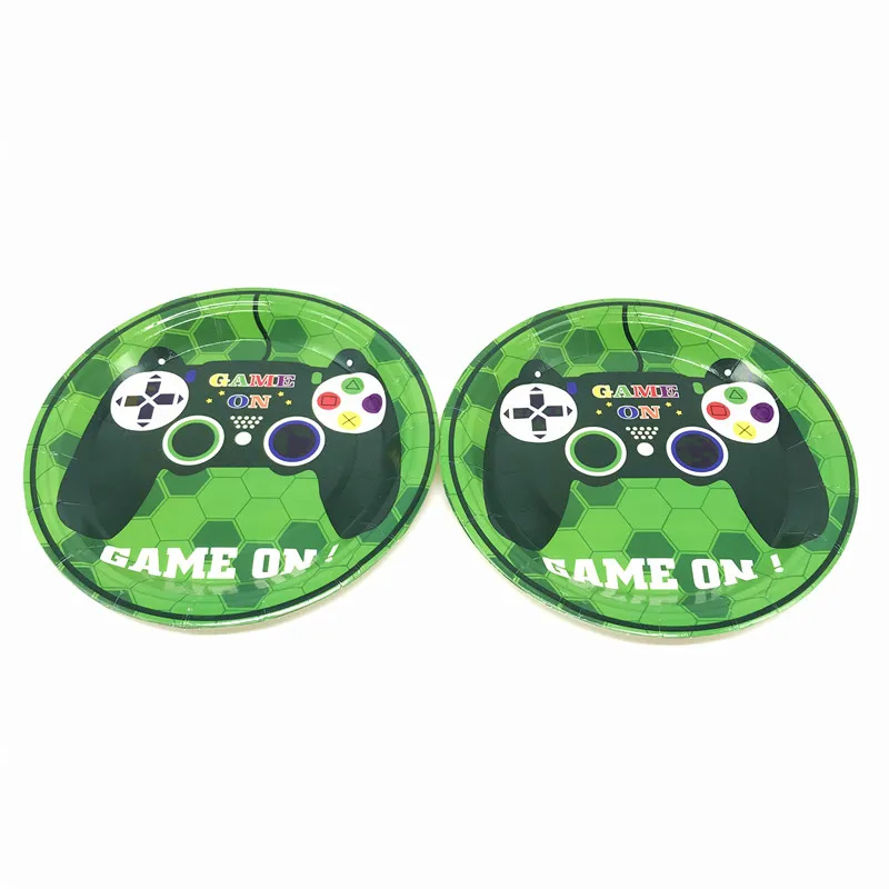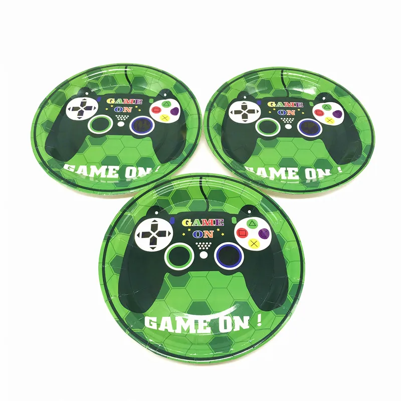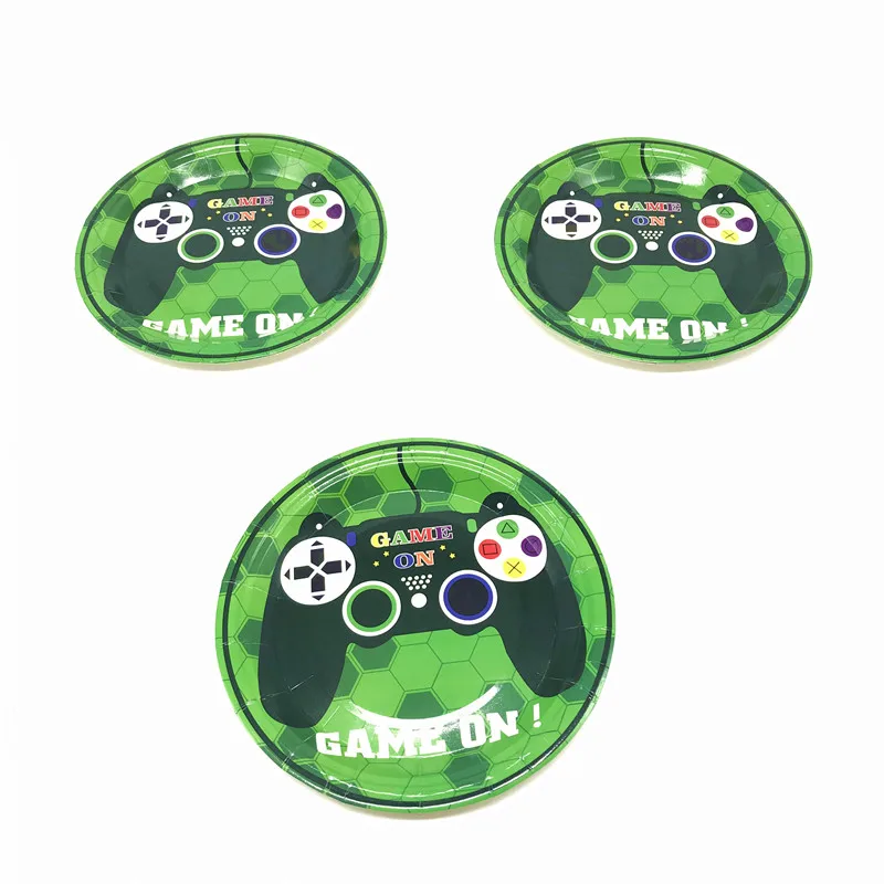 Набор зеленой одноразовой столовой посуды для игры в видео, тарелкасалфетка для игрового контроллерафотография, декор для вечеринки в честь Дня Рождения, для детей и мальчиков