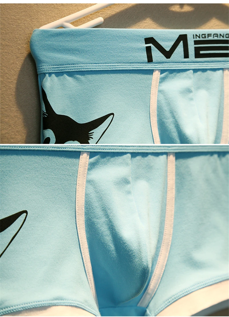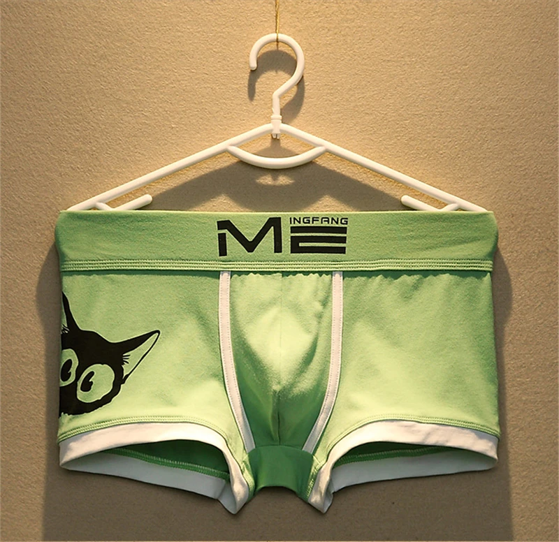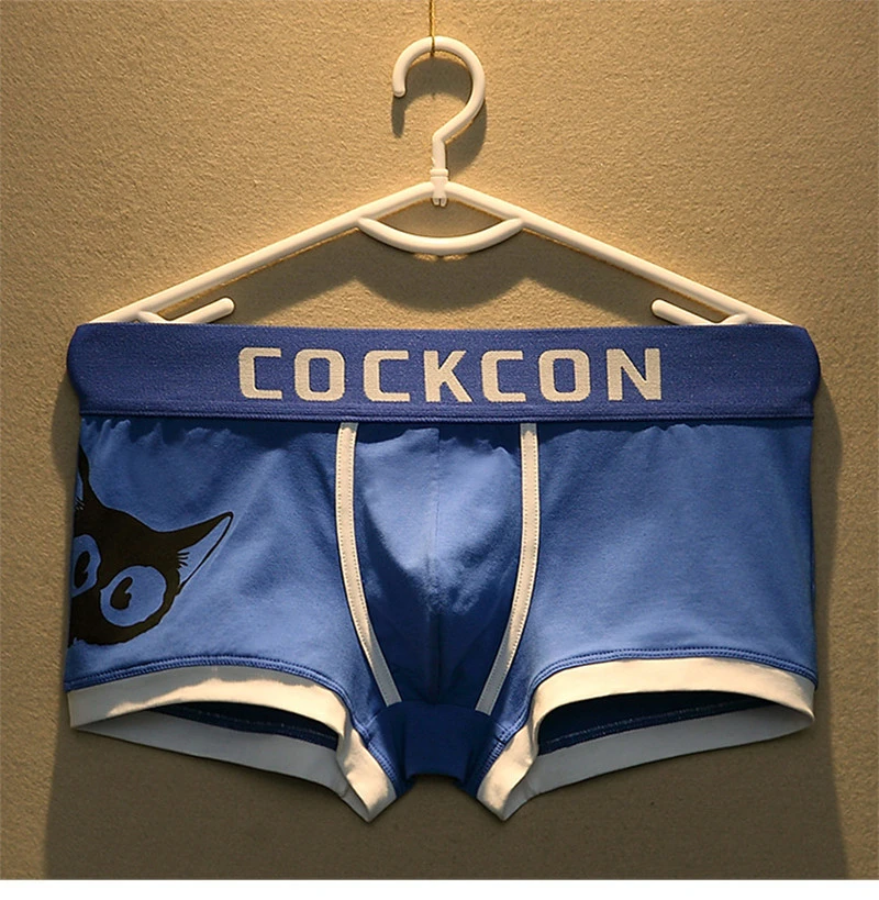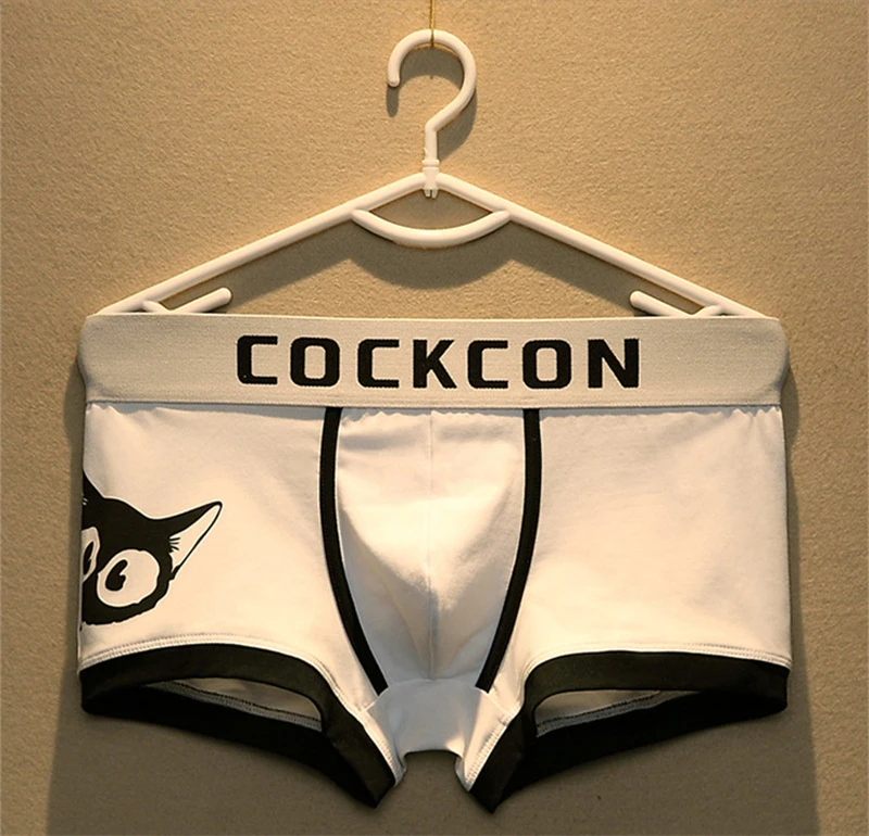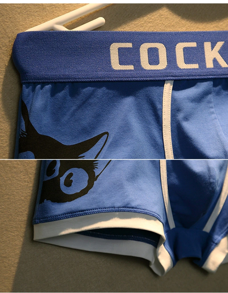Трусы-боксеры мужские, пикантное Брендовое нижнее белье для геев, хлопковое с мультяшным котом, мужское забавное белье, трусы-боксеры для мальчиков