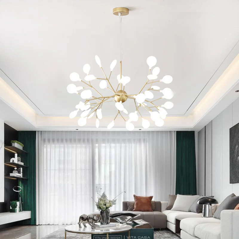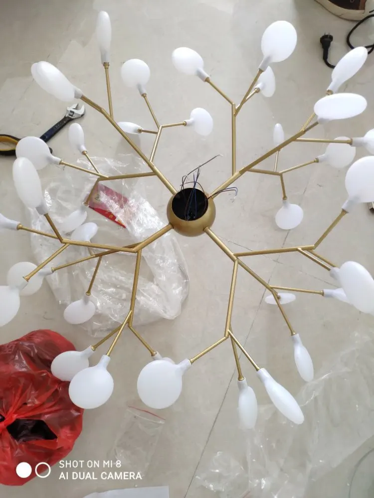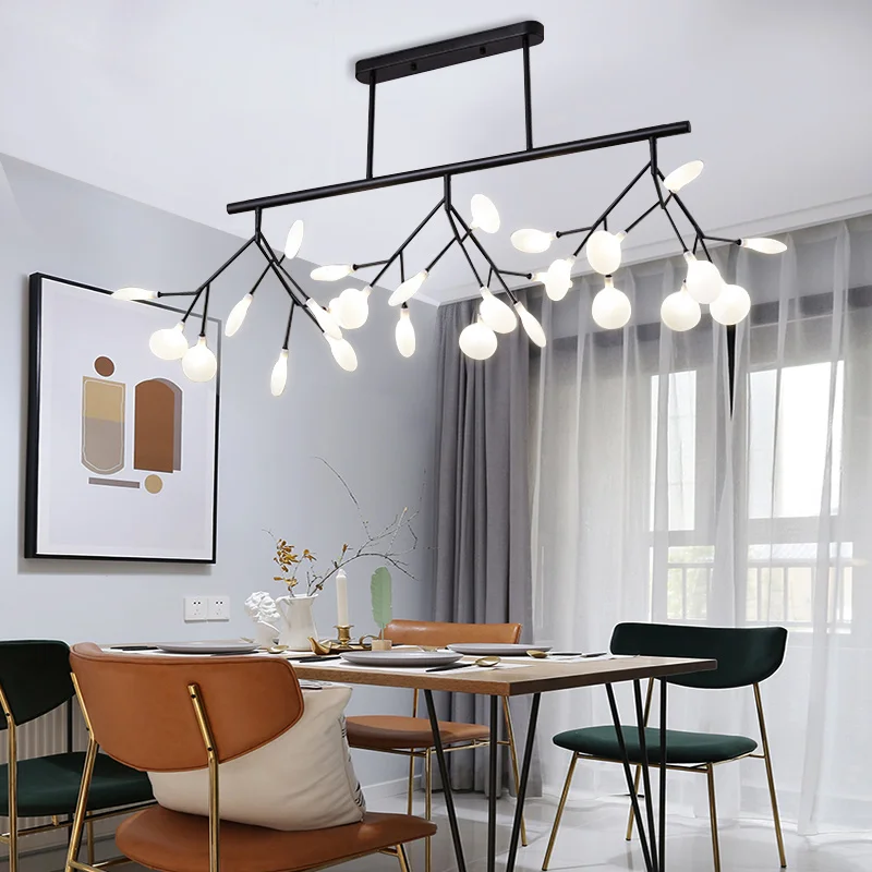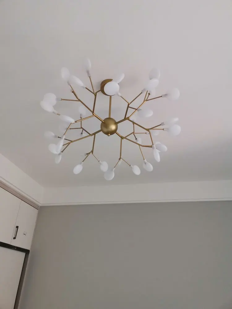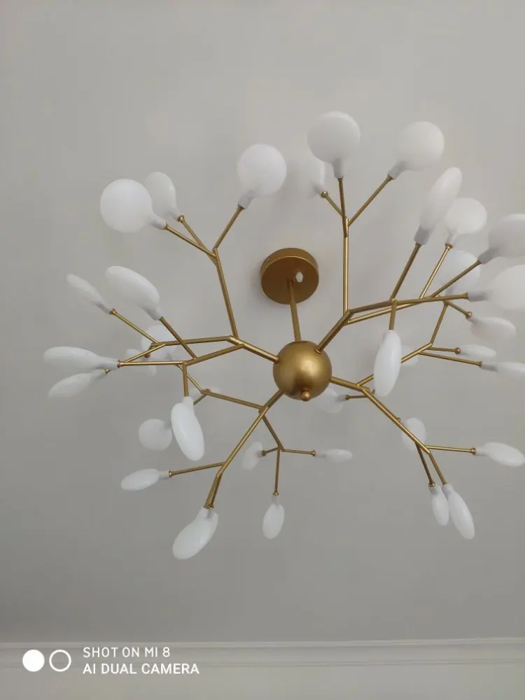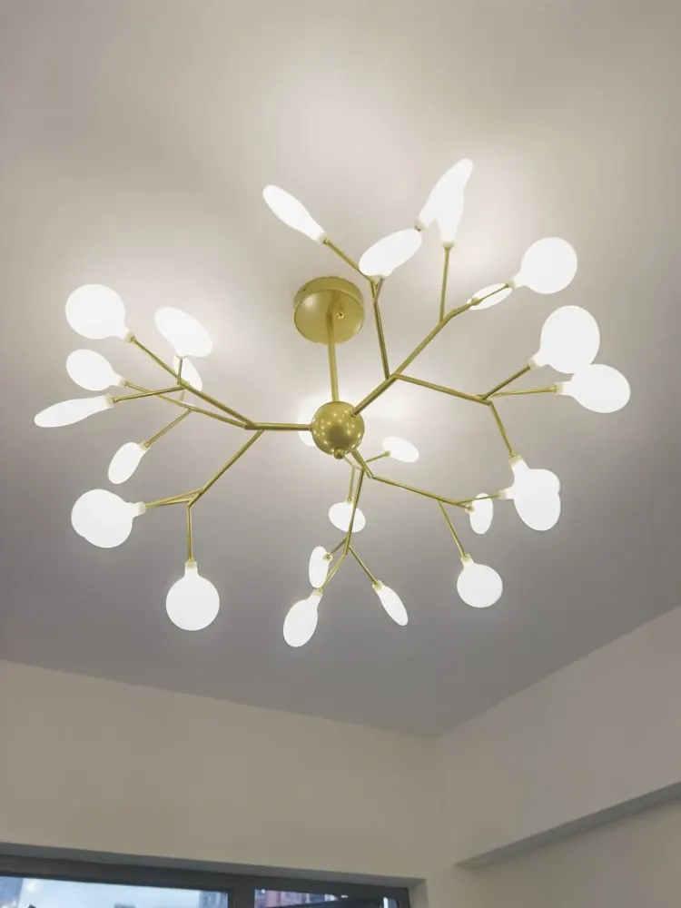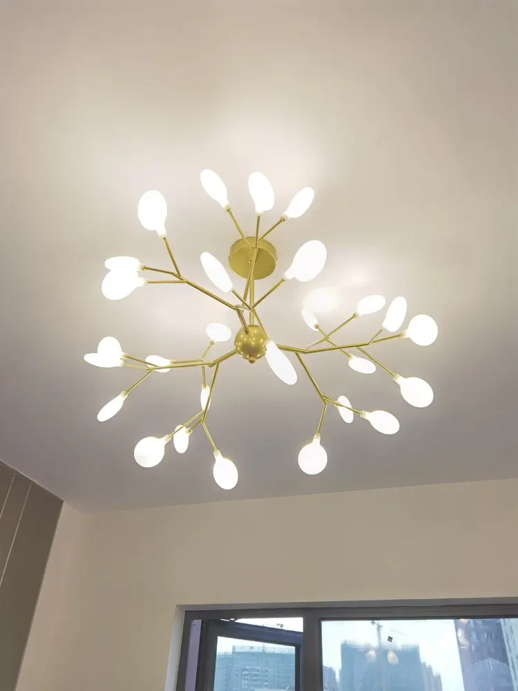 Современная светодиодный ная люстра Светлячок для гостиной, столовой, потолочный светильник с черной Золотой веткой для кухни, спальни, домашнего декора