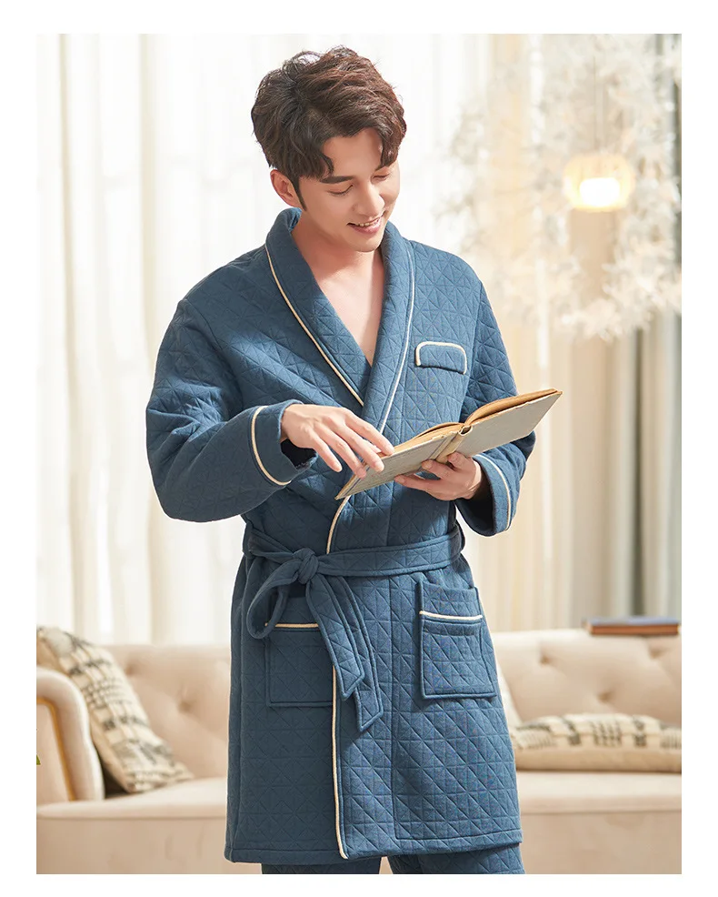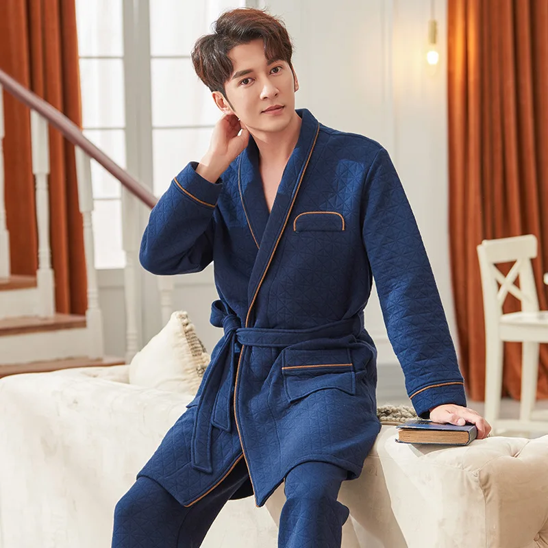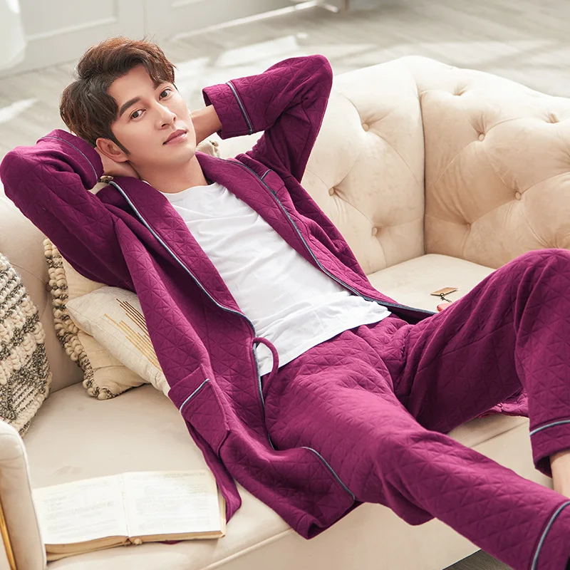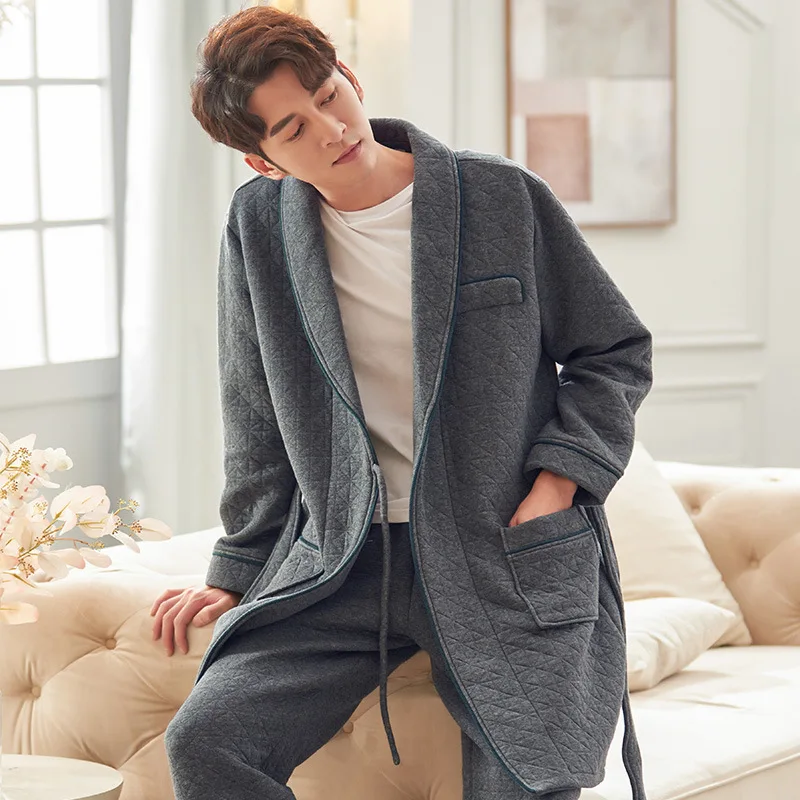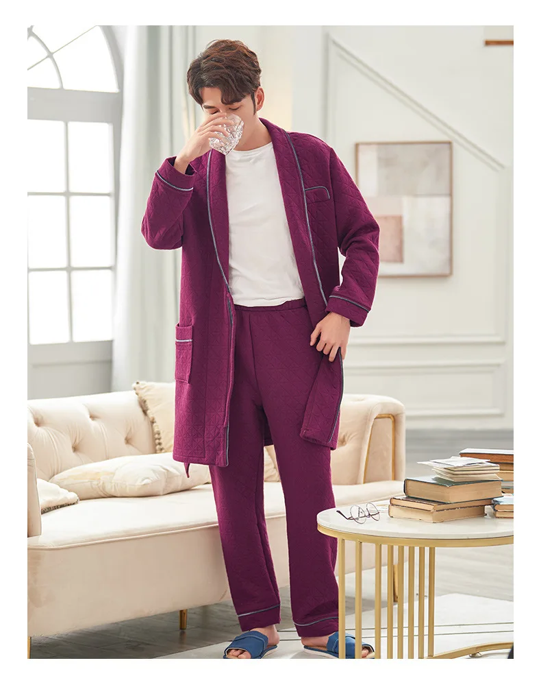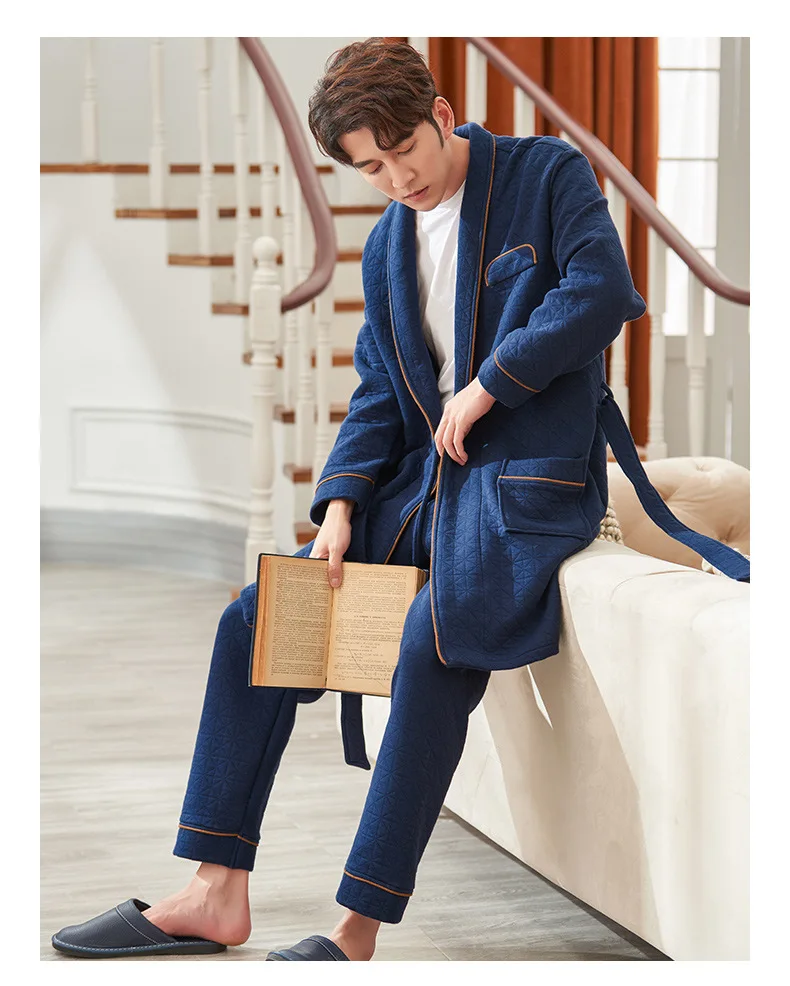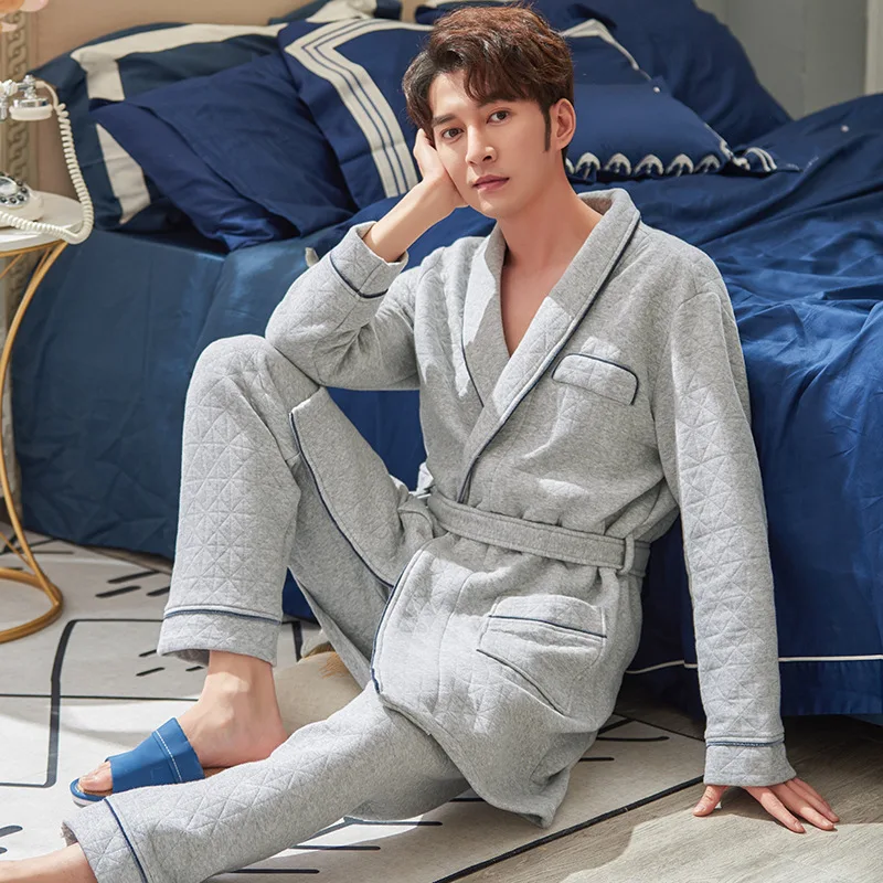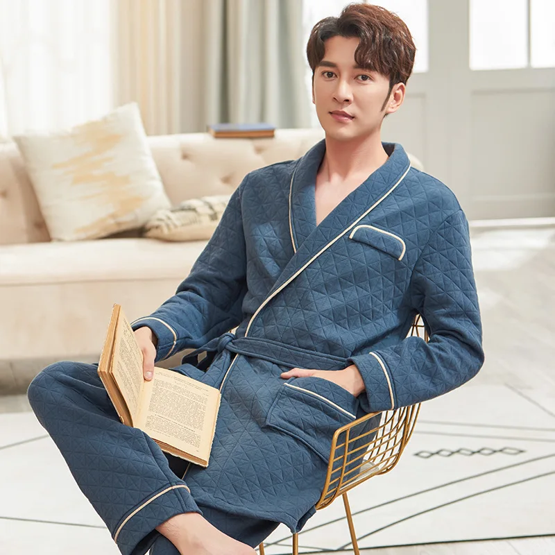 Комплект пижамный мужской из 2 предметов, хлопок, оверсайз, утепленный домашний костюм, удобный зимний халат для отдыха, весна-осень
