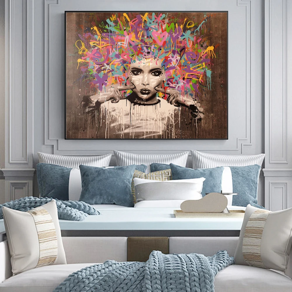 Художественный плакат на холсте в стиле граффити, домашняя живопись...
