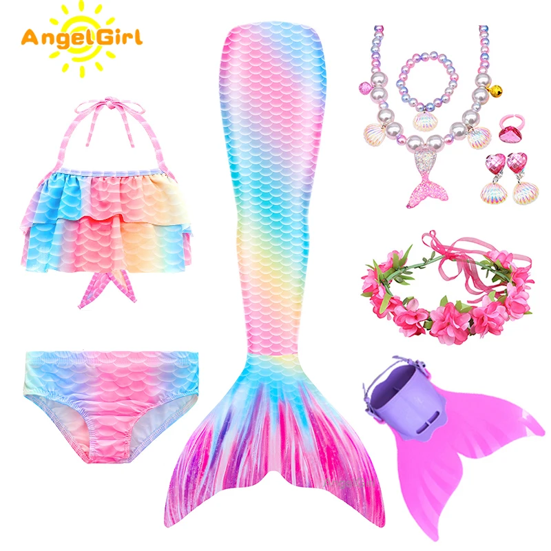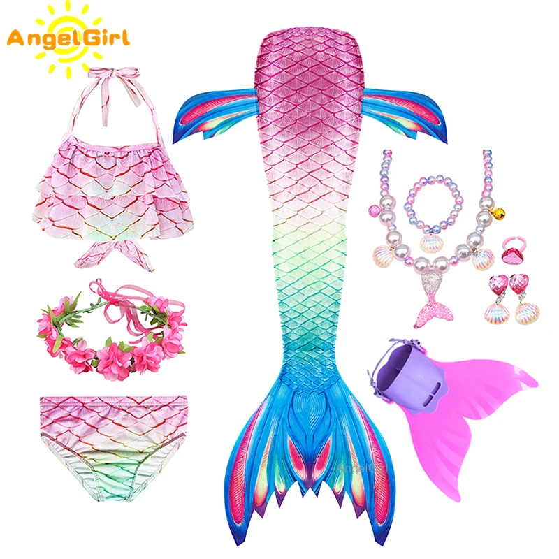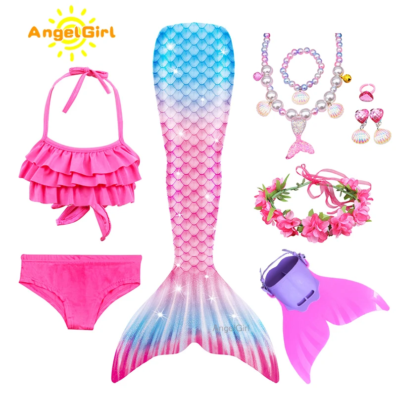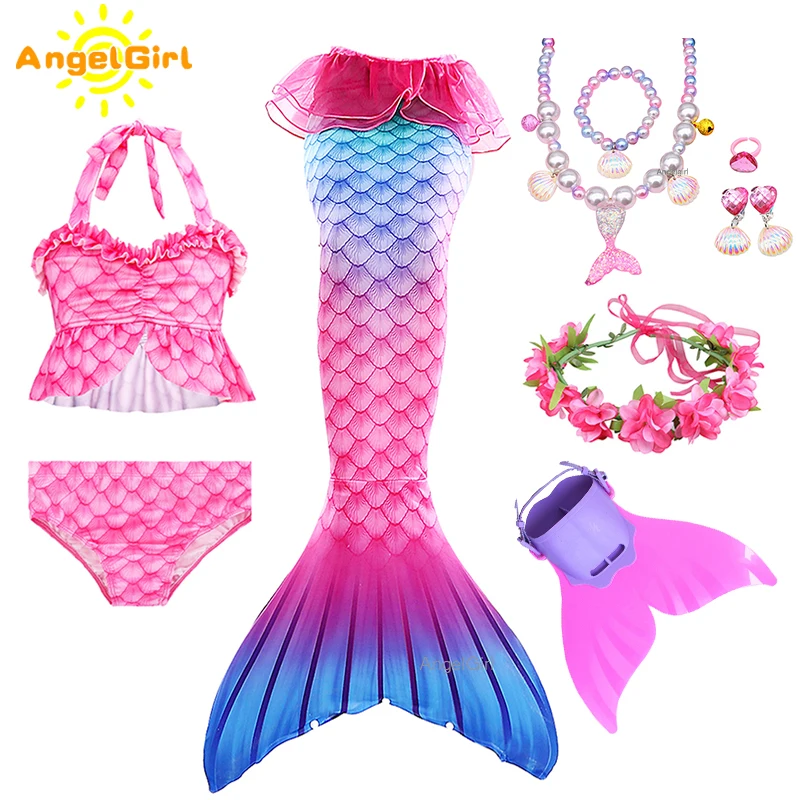 AngelGirl хвост русалки детский купальный костюм Русалка плавательный купальник Косплей Костюм Купальник бикини наборы рождественские подарки