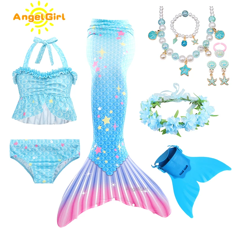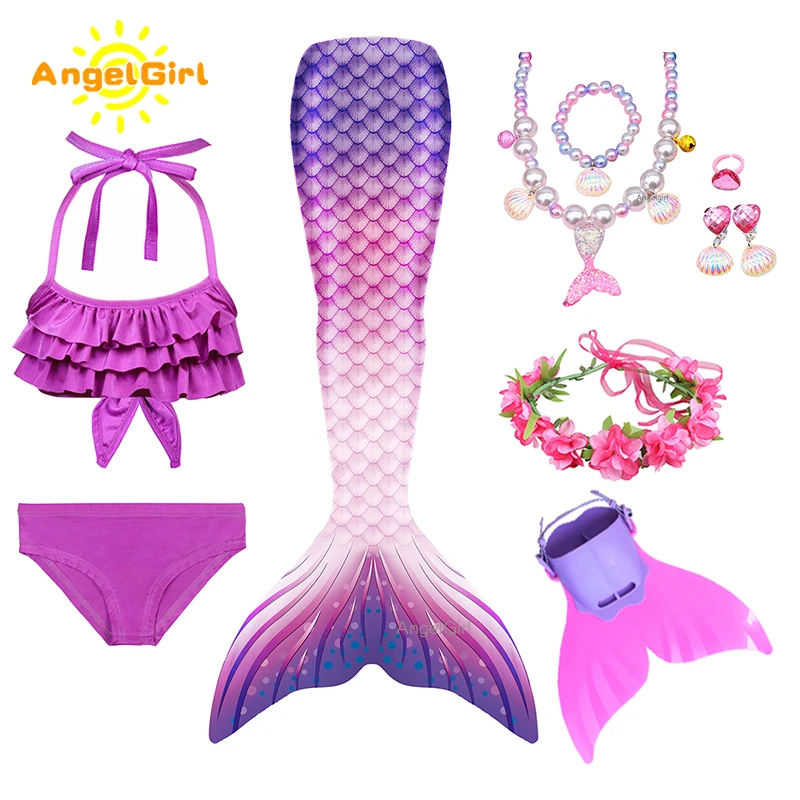 5 шт.: 1 платье с хвостом русалки + 1 бюстгальтер + 1 шорты + 1 гирлянда + 1 ожерелье10 шт.: 1 * платье с хвостом русалки + 1 * бюстгальтер + 1 * шорты + 1 * гирлянда + 1 * ластик монофин + 1 * ожерелье + 1 * браслет + 1 * кольцо + 1 пара зажимов для ушей