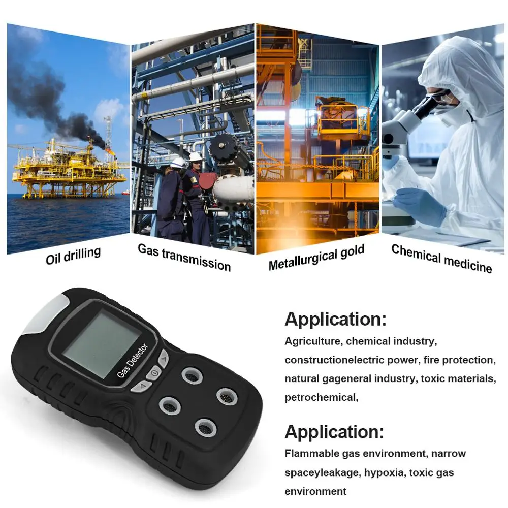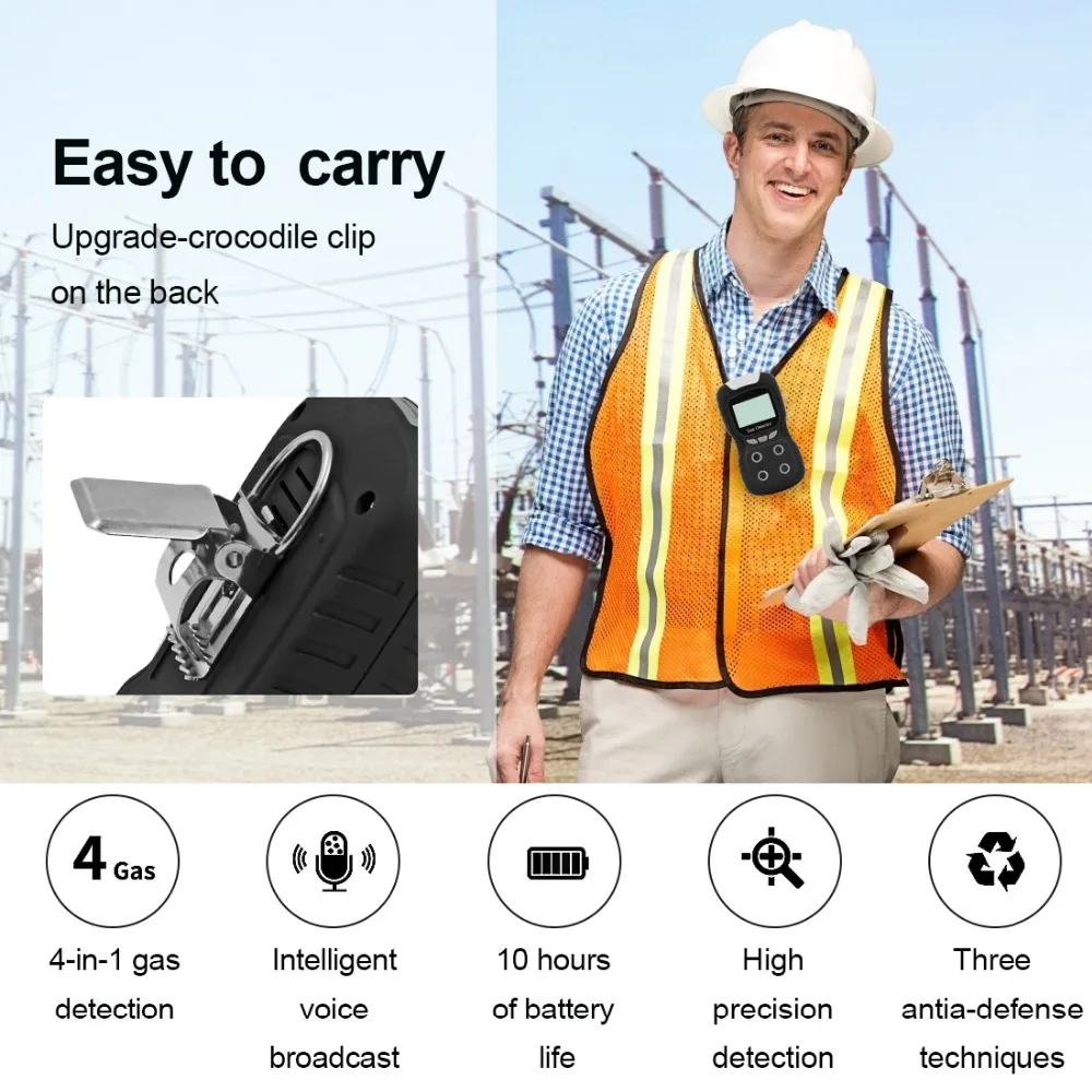 Газовый Детектор портативный голосового типа O2 CO H2S EX 4 в 1 монитор качества воздуха тестер анализатор звука светильник вибрации сигнализации