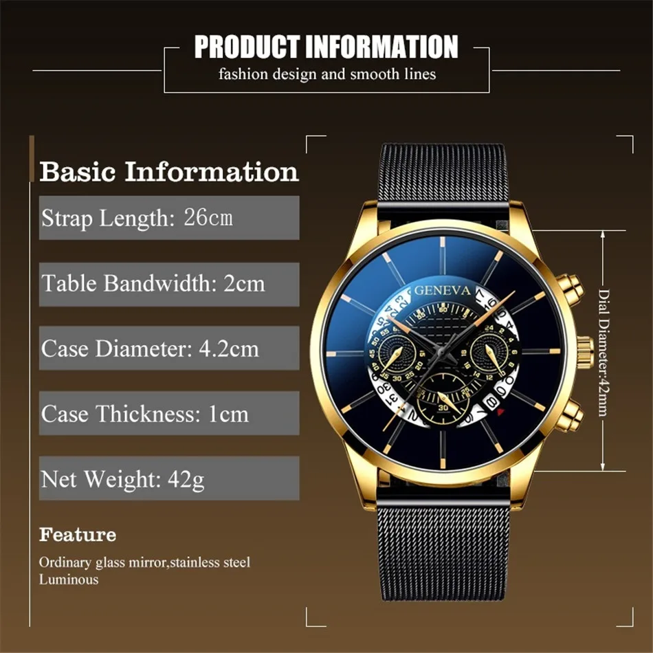 Часы мужские кварцевые, с сетчатым ремешком из нержавеющей стали