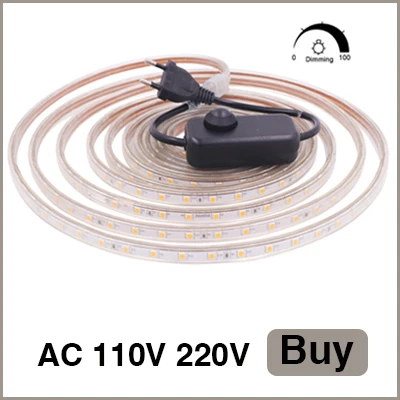 Светодиодная лента 220 В Водонепроницаемая 60 светодиодовм гибкая ленточная SMD 5050 светильник та с евровилкой