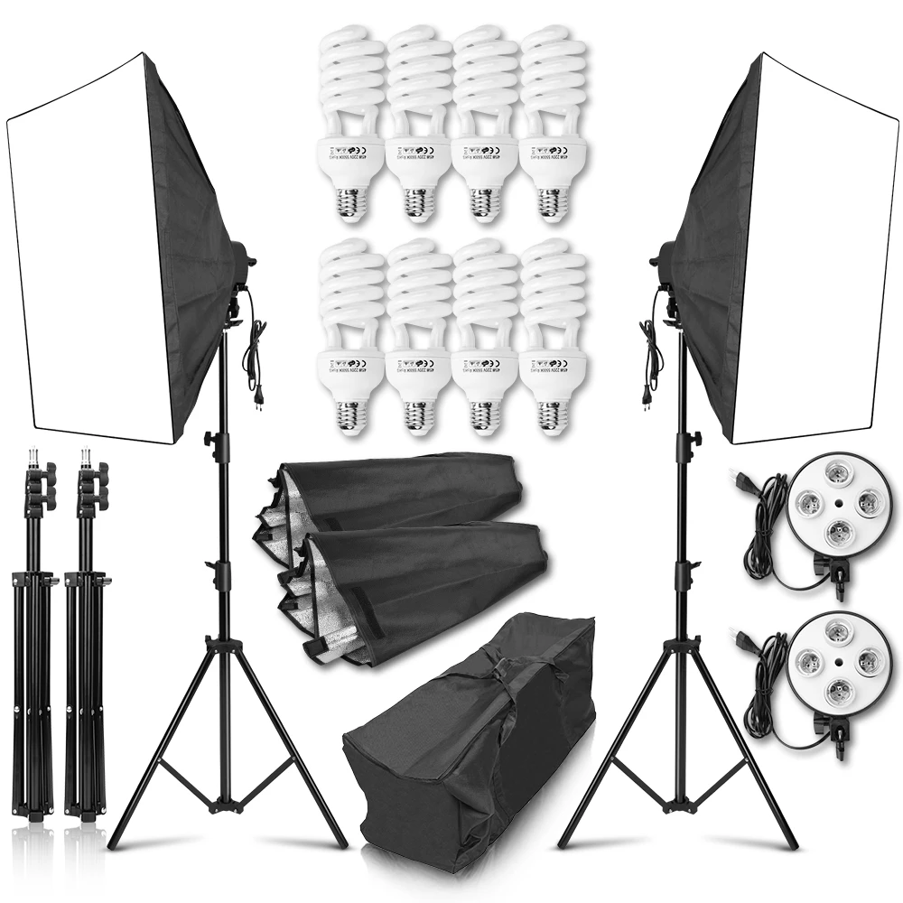 50x70 см софтбокс светильник ing Kit фотографии; Непрерывный светильник Soft Box E27 4 лампа держатель 2 м светильник Штатив для фотостудии Vedio