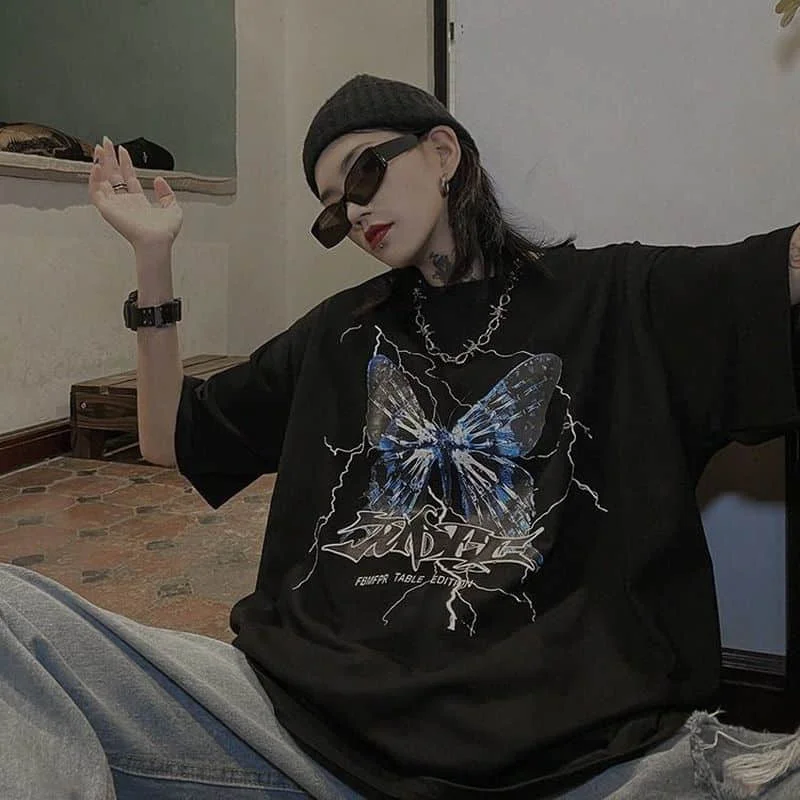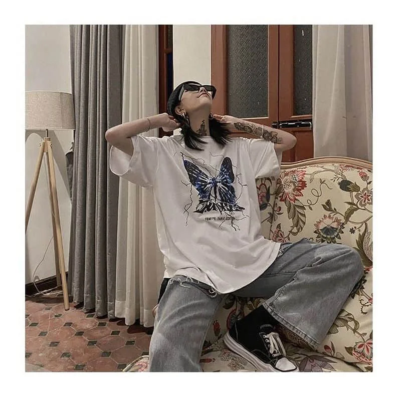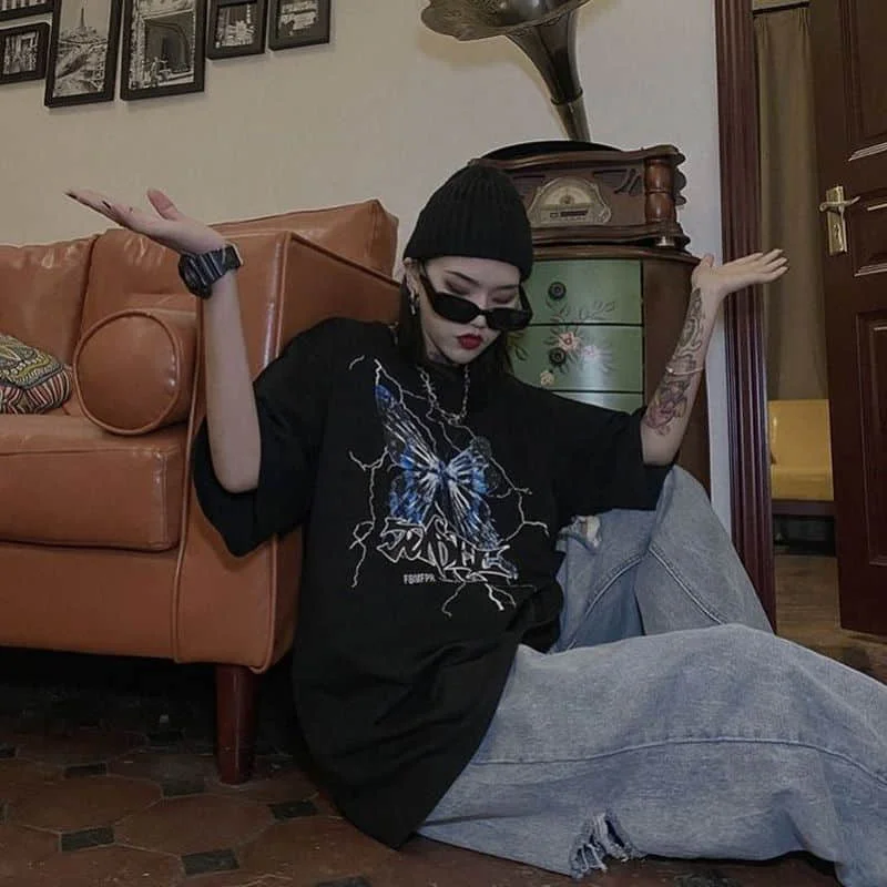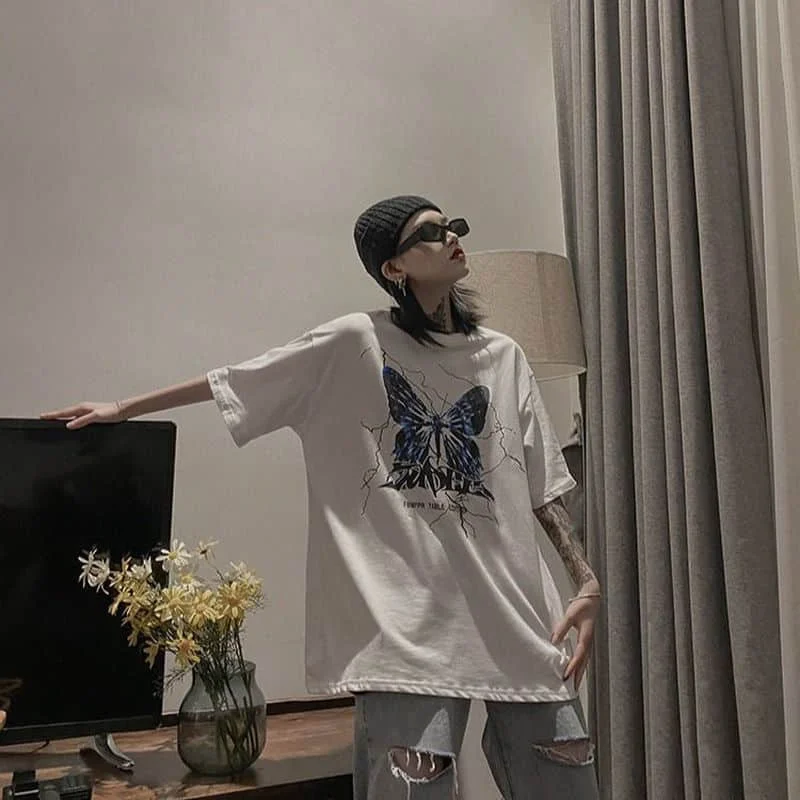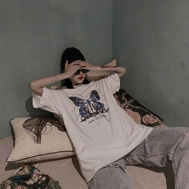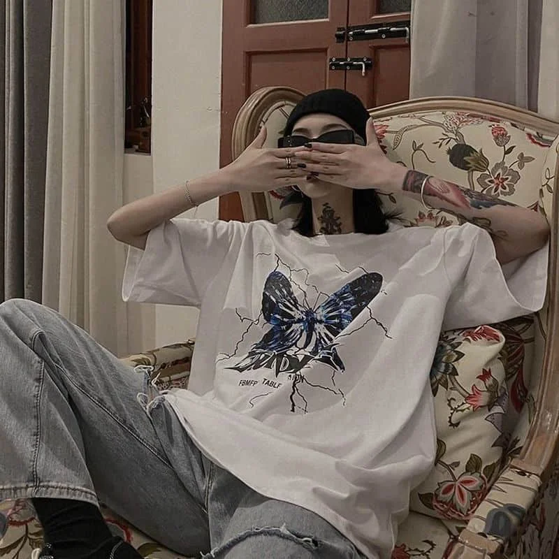 Футболка женская хлопковая, с принтом бабочек, y2k, в стиле Харадзю...