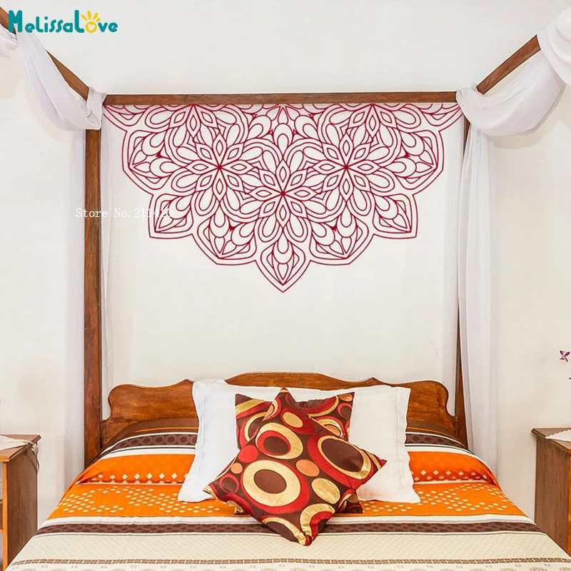Половина мандала цветок стикер стены Декор Спальни изголовье Винило...