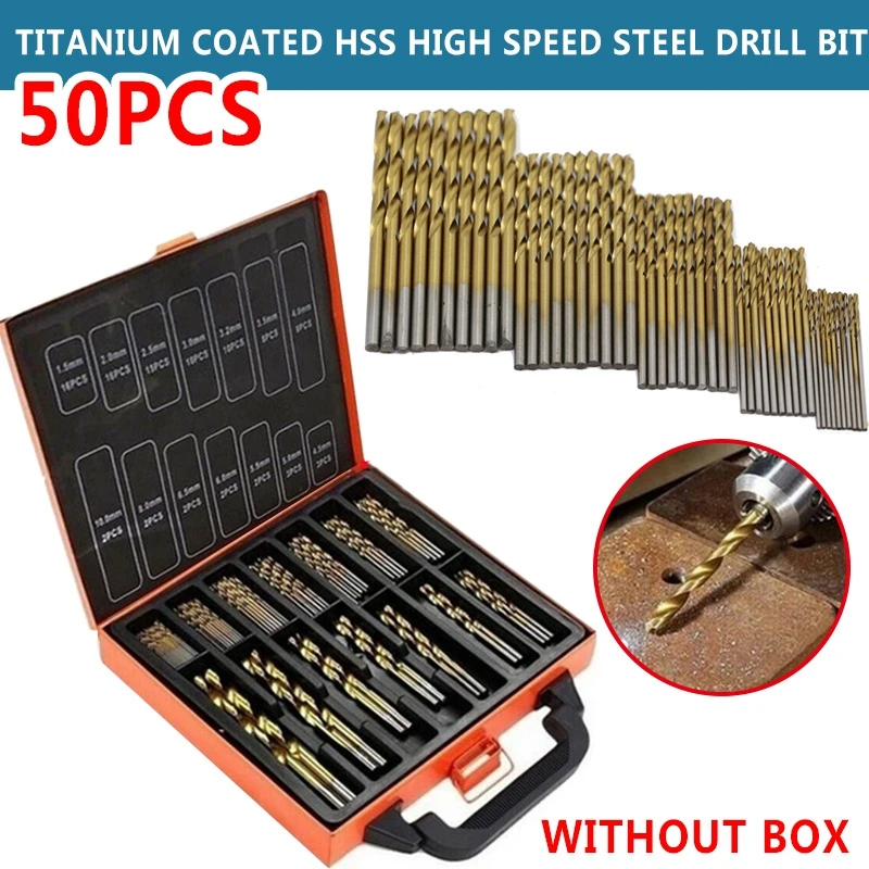 1,0 мм1,5 мм2,0 мм2,53,0 мм 50 шт. высокоскоростное спиральное сверло из быстрорежущей стали с титановым покрытием набор инструментов ручные инструменты запчасти золотого цвета
