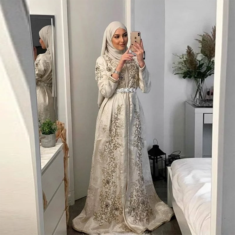 Марокканское кафтан, мусульманские свадебные платья 2021, новейшая вышивка, Дубай, свадебные платья для женщин, свадебное платье цвета слоновой кости на заказ, размера плюс
