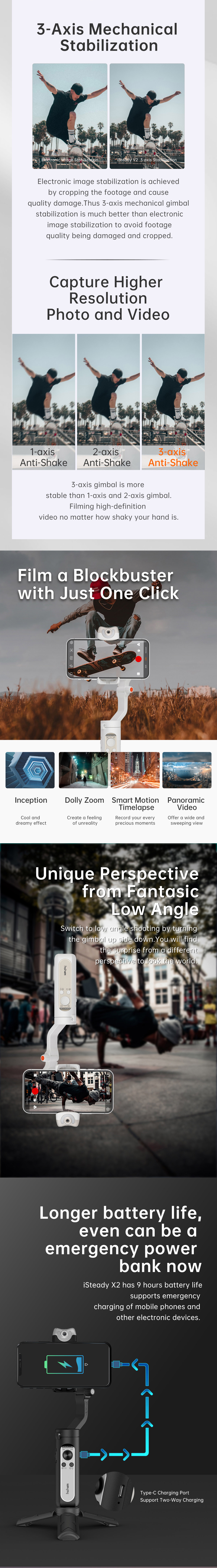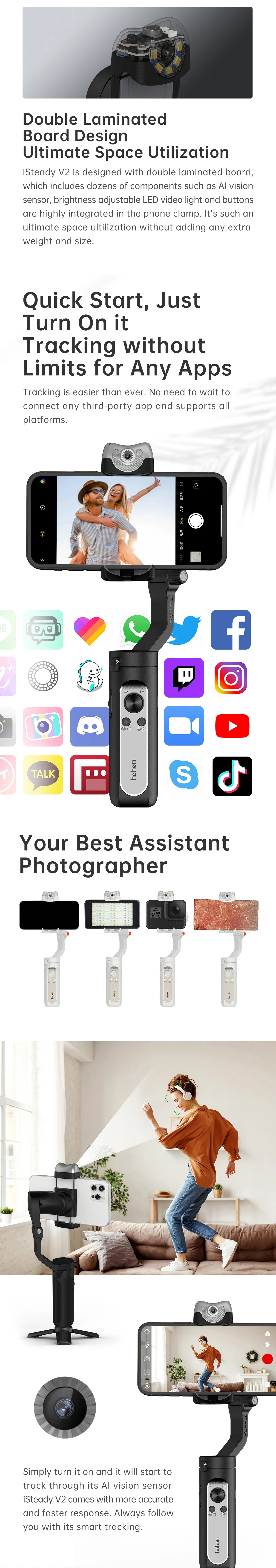 Штатив-Стабилизатор Hohem iSteady V2, 3-осевая селфи-Палка для видеоблогов, смартфонов iPhone, Android, экшн-камер Gopro