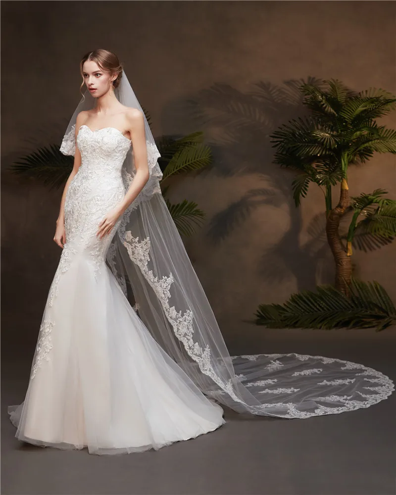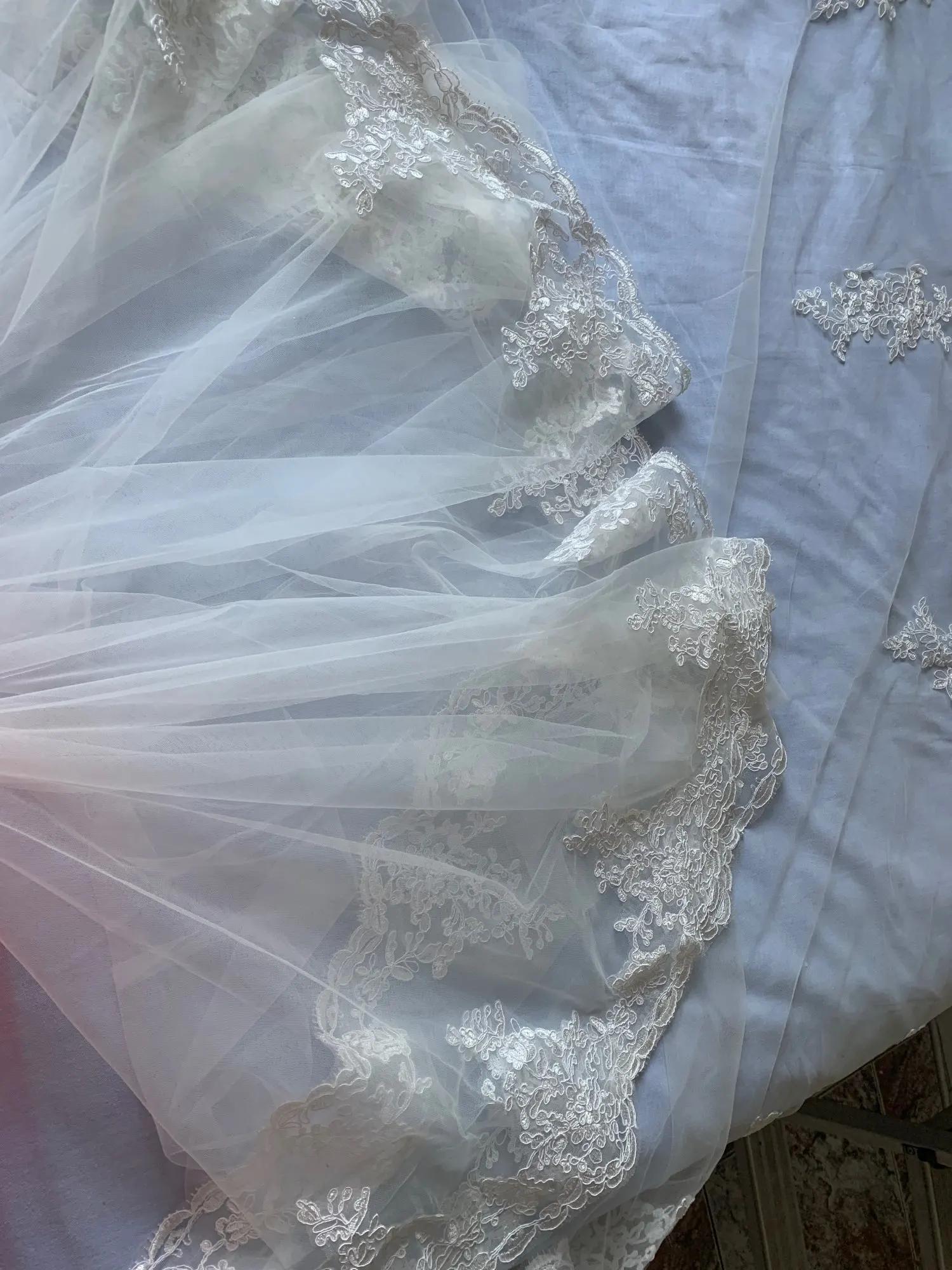 Фата свадебная с гребнем, 2 слоя, с кружевной каймой, 3 м