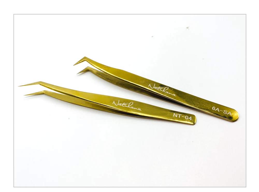 Антистатический пинцет NATUHANA для наращивания ресниц, золотой Пинцет для ресниц из нержавеющей стали, профессиональные инструменты для макияжа