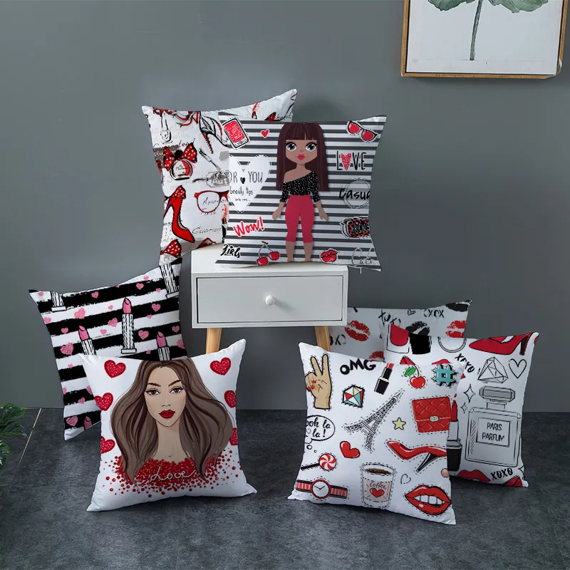 1 шт., наволочки из микрофибры с принтом губ и поцелуев на День Св. Валентина, для дивана, офиса, спальни, домашнего декора, 45 х45 см