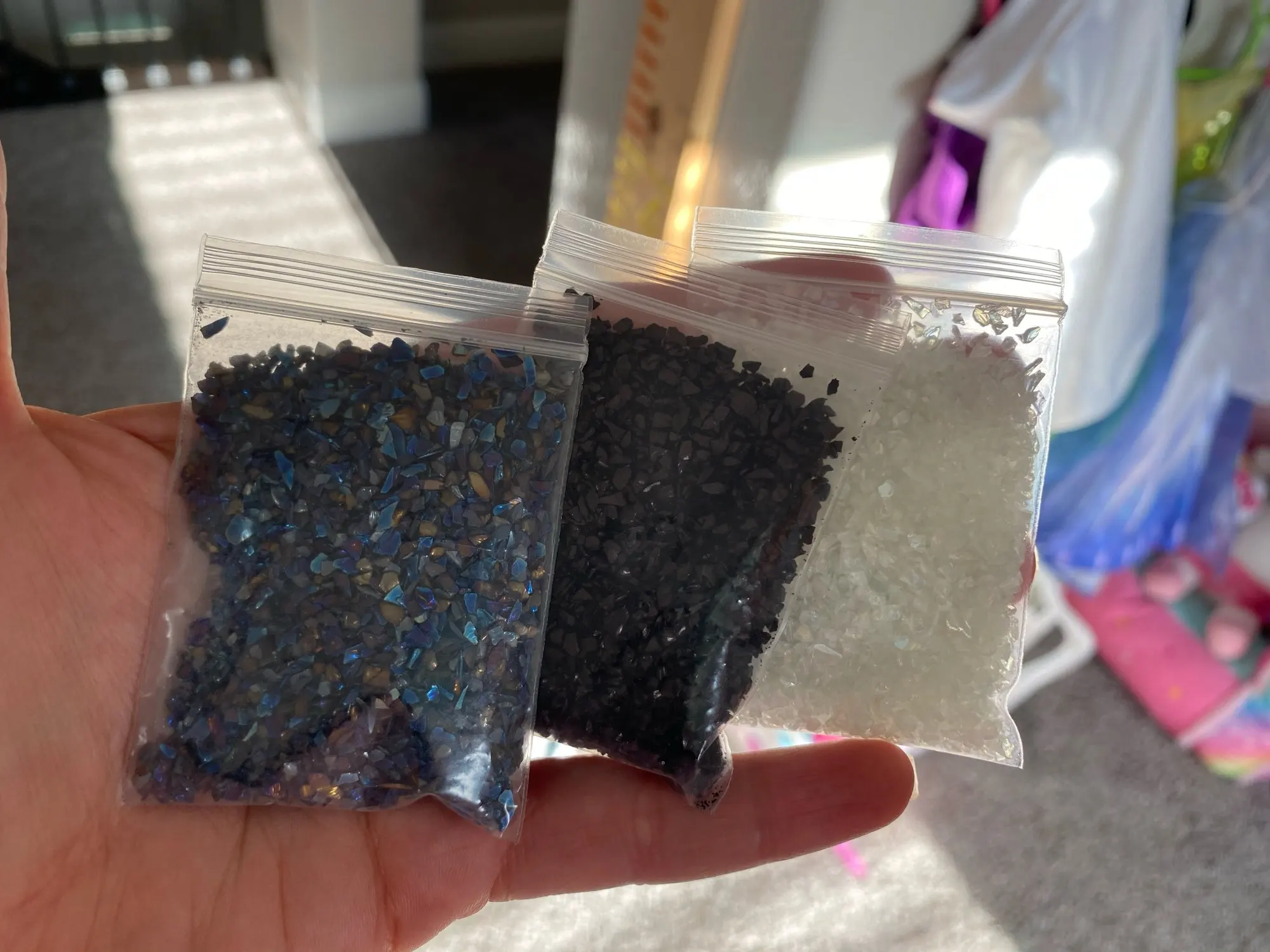 Камни маленькие. Все вместе они выглядят черными, но когда вы посмотрите на них, у каждого есть другой цвет и яркость. Они очень красивые. Они идеально подходят для поделок. Они оставят мой ремесел фантастическим внешним видом. Они приходят в очень хорошо упакованной сумке. Невозможно сломать посылку во время доставки. Я весил по прибытии, и они приходят чуть более 50 грамм. Продавец достиг 100% и настоятельно рекомендуется. Поставляется быстро и не займет много времени, чтобы прибыть.