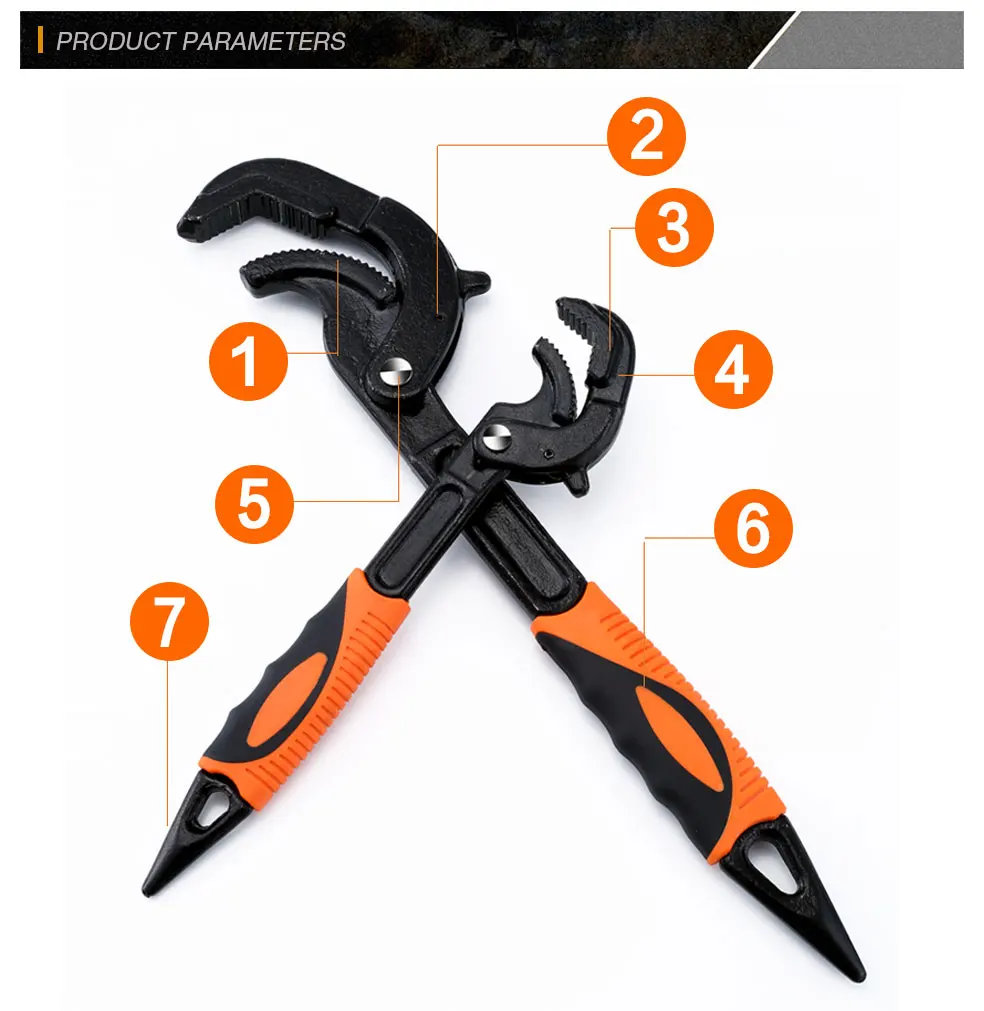 1. Два цвета TPR прорезиненная ручка: эргономичный дизайн, удобно держать и легко использовать. 2. Усиленные заклепки: точная ссылка, легко хранить. 3. Обработка поверхности гальваническим покрытием: красивый и щедрый, не легко ржавеет. 4. Высококачественная высокоточная ковка из хромированной ванадиевой стали, прочная и долговечная.