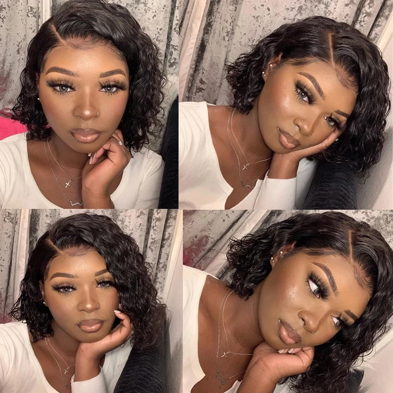 Бразильские Волнистые Короткие парики с коротким Бобом 13x4, парики из человеческих волос на сетке, волнистые вьющиеся парики с коротким Бобом для женщин, предварительно выщипанные парики на сетке спереди