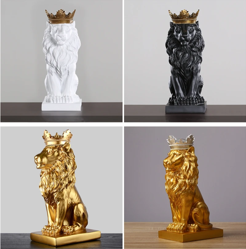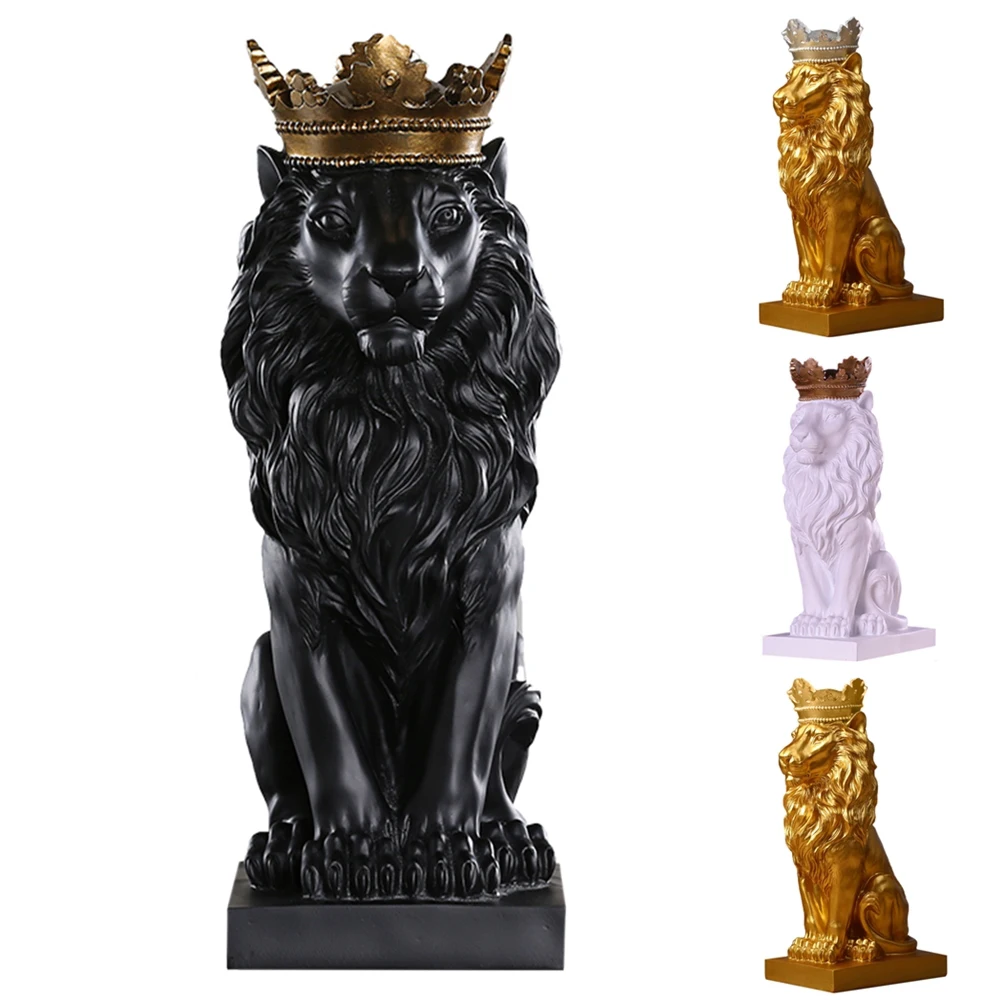 Золотая Корона, статуя короля льва, Современная Скульптура животного из смолы, украшение для дома, настольное украшение для офиса, подарки, статуэтка