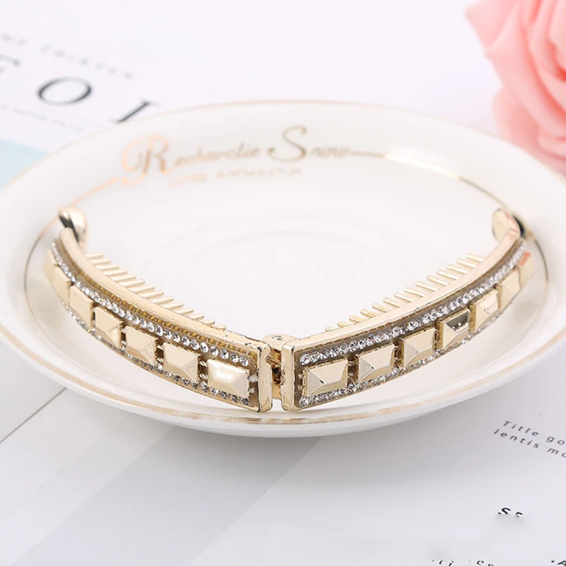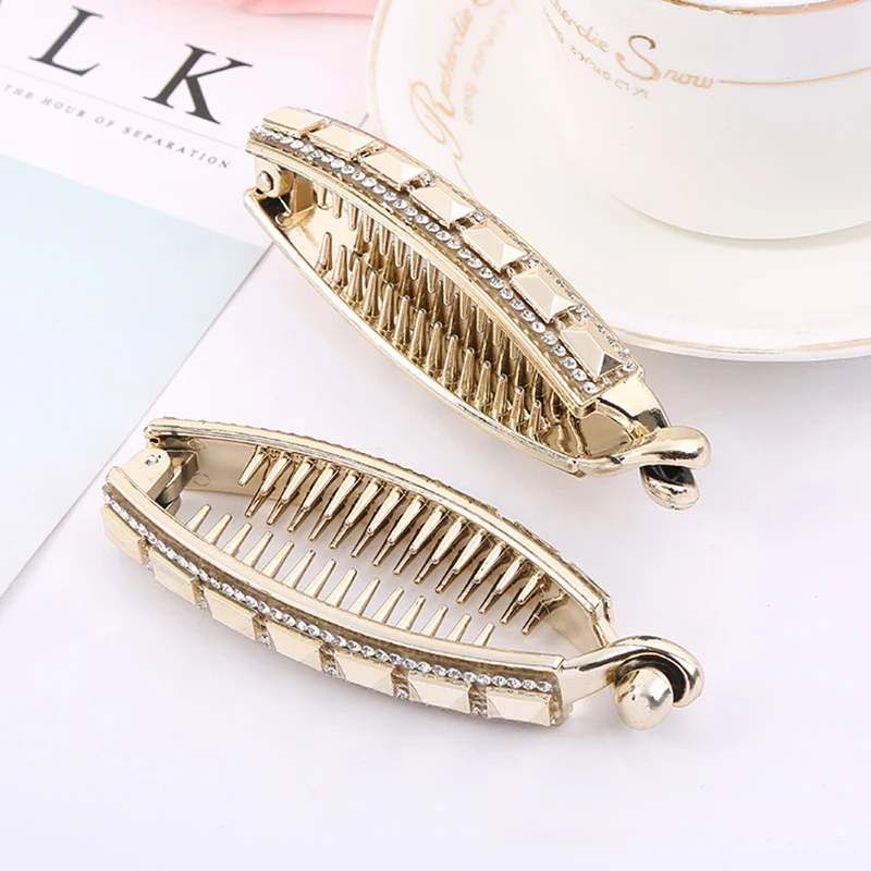 Банановые заколки для волос для женщин и девушек, блестящие элегантные стразы, пластиковые заколки для волос, аксессуары для волос золотистые шпильки для волос