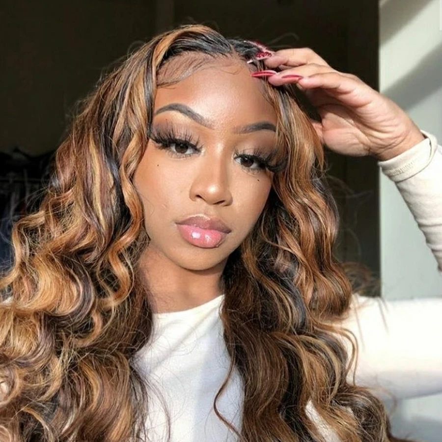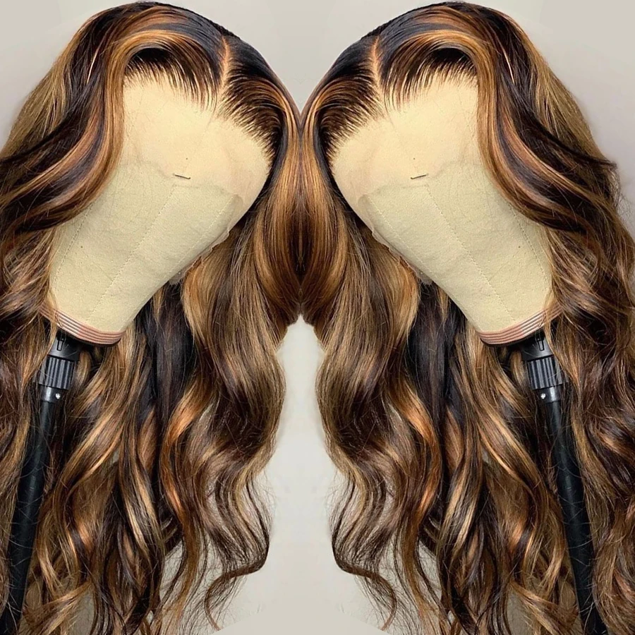 Парик Омбре из медового блондинка на сетке спереди, волнистые бразильские волосы без повреждений, парики из натуральных волос с предварительно выщипанными 180 коричневыми прямыми волнистыми T-образными частями, парик на сетке
