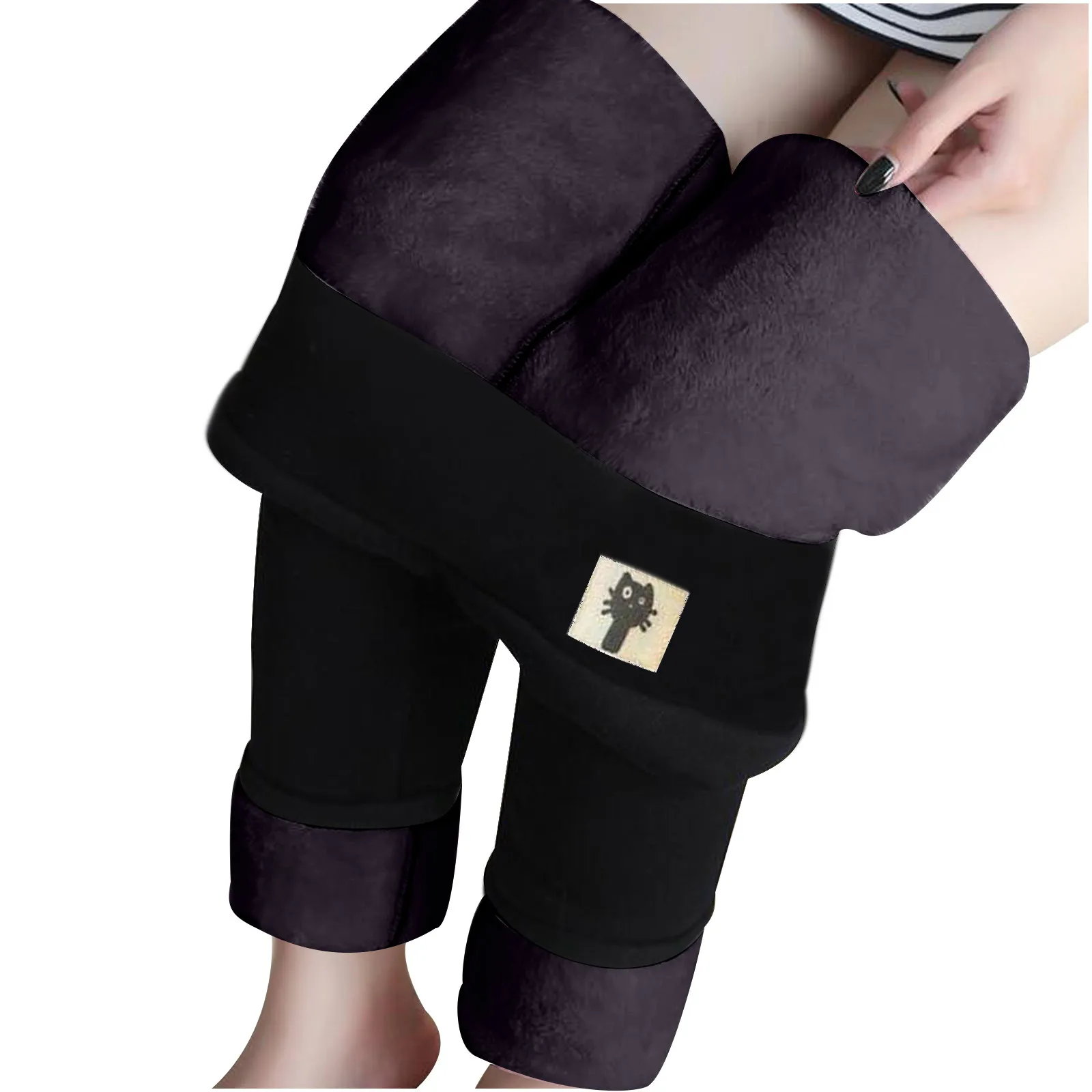 Зимние женские леггинсы, бархатные теплые штаны, леггинсы с высокой талией, Женские однотонные леггинсы с надписью кошки, удобные теплые эластичные леггинсы