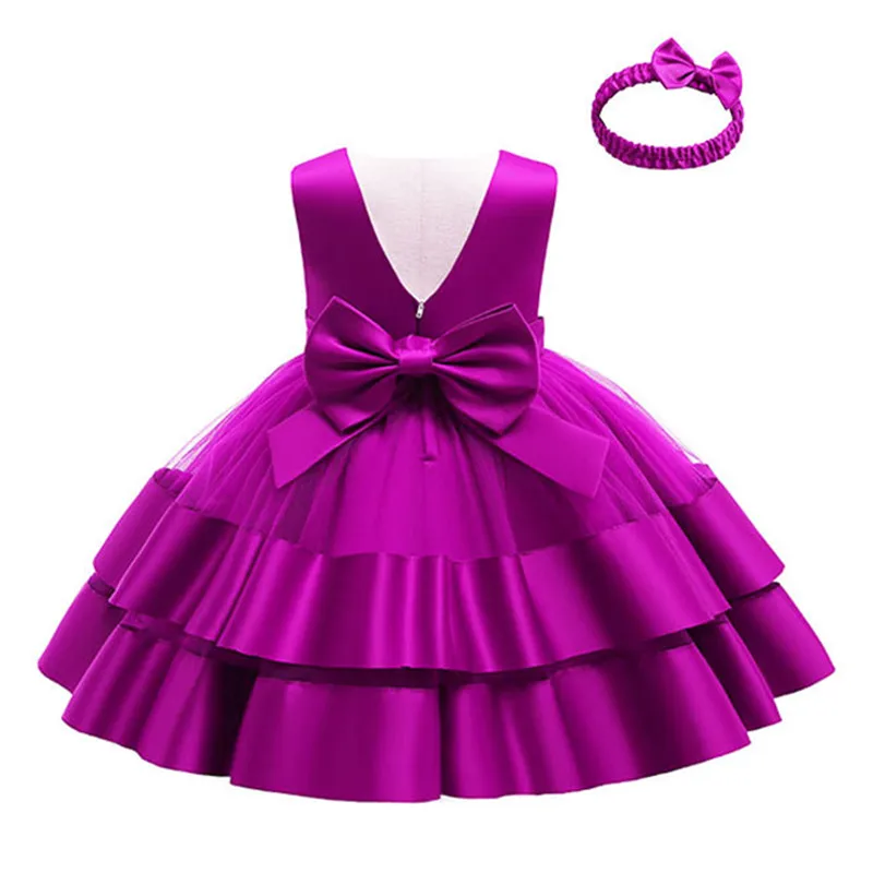 Платье для маленьких девочек элегантное детское вечернее платье принцессы с бантом многослойное Сетчатое платье с головным убором 2 предмета, платье с цветочным узором для девочек на день рождения