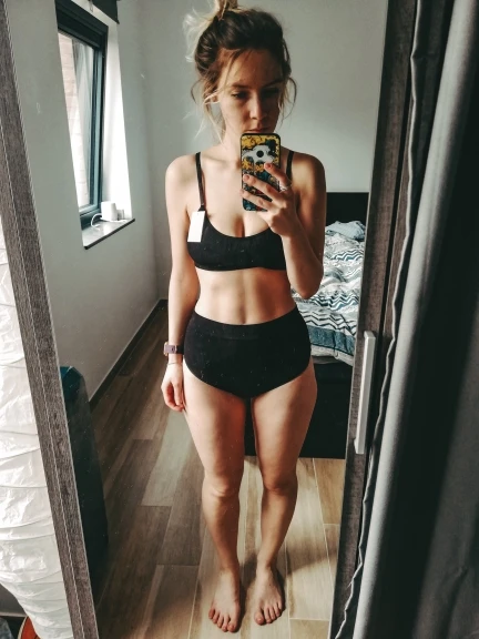 Неплохой комплект, топ на бюст D впритык, на меньший будет лучше. Кто ищет хлопок это не ваш вариант, состав 92%полиамид, 8%эластан. Быстрая доставка 2 недели до Праги.