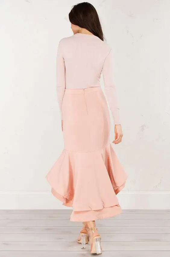 Женская атласная юбка-русалка, юбка до середины икры, на молнии, персиковая, розовая, черная, 2021