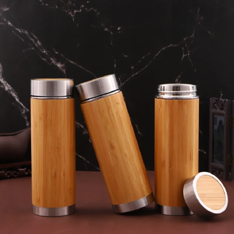 Стакан из натурального бамбука 450 мл, вкладыш из нержавеющей стали, термос, термосы, изолированные бутылки, Кружка для кофе, чая, Бамбуковая чашка