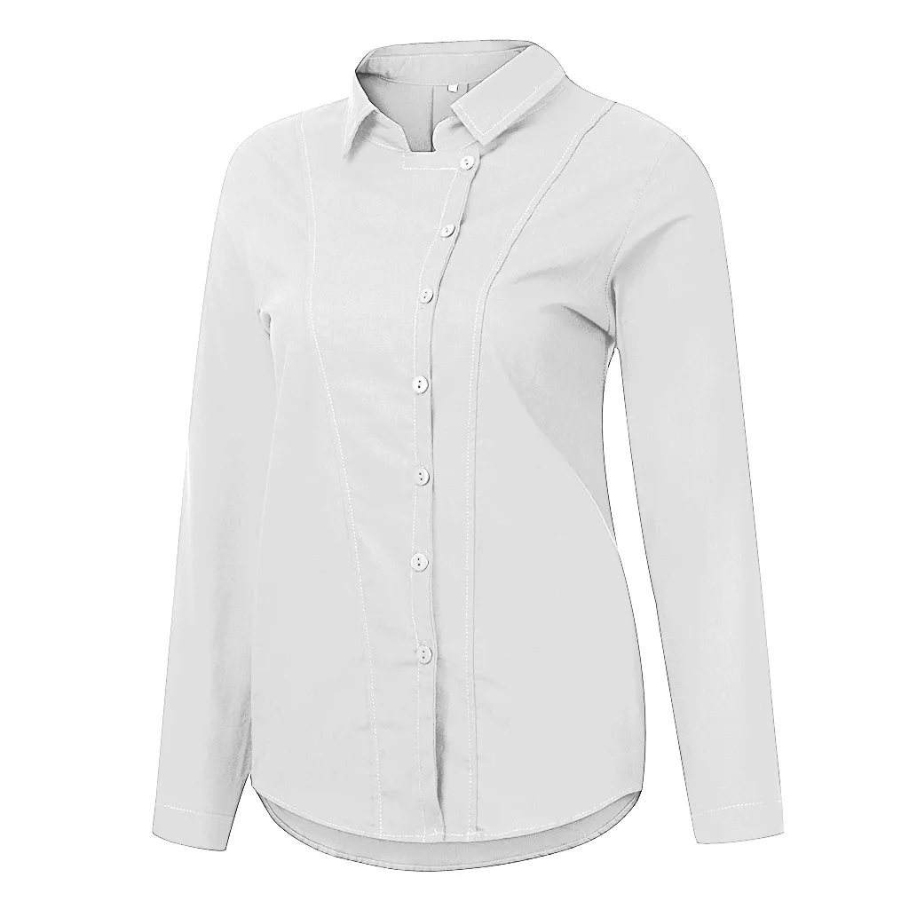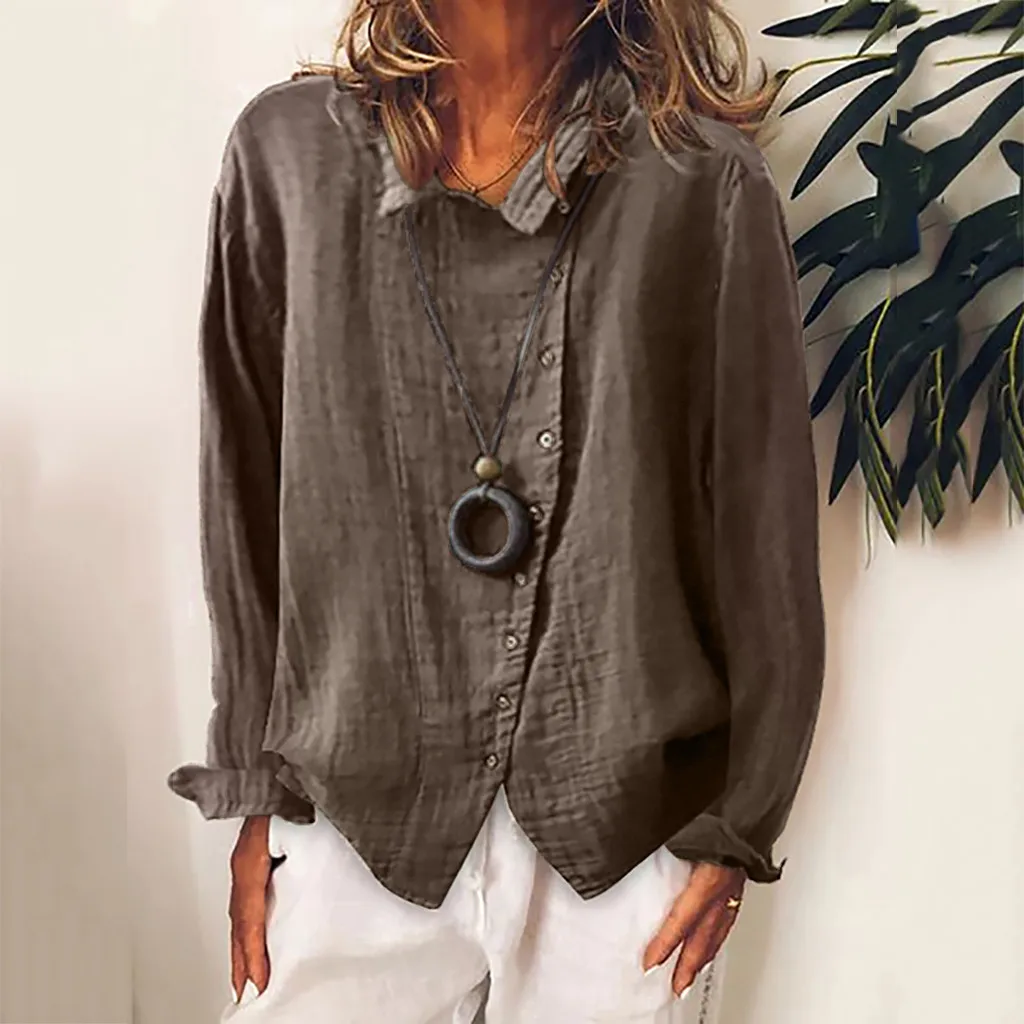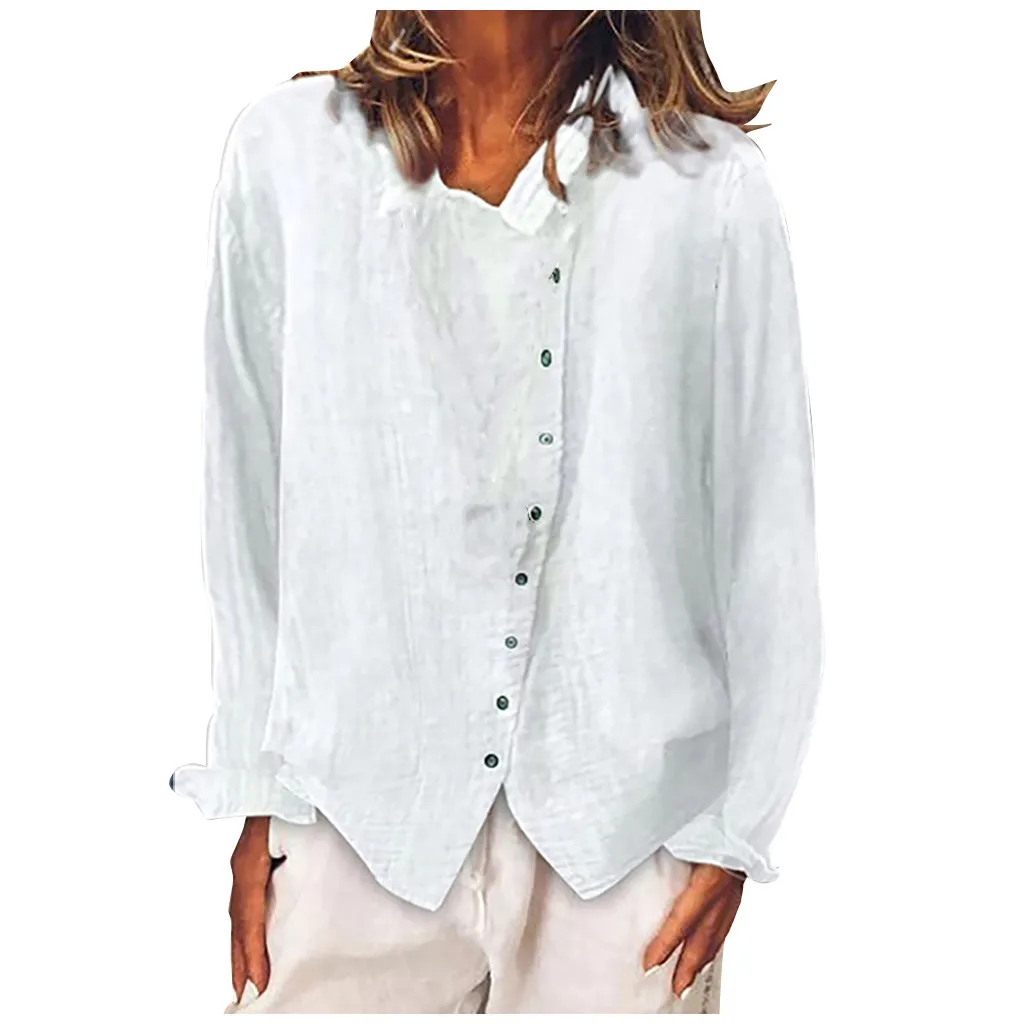 Модная хлопковая и льняная блузка для женщин свободного покроя твердые пуговицы детских костюма с рубашкой с длинными рукавами Блузка размера плюс Топы Blusas Mujer De Moda