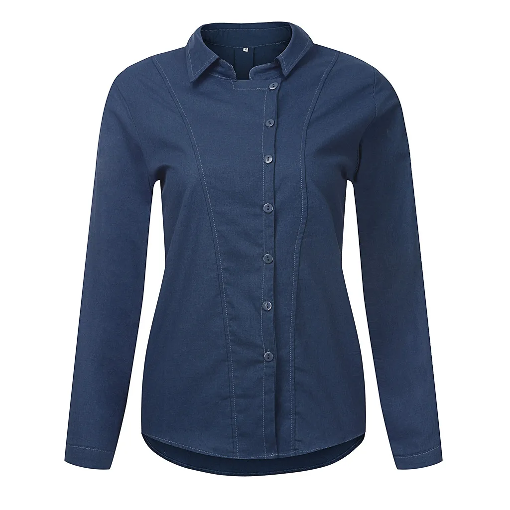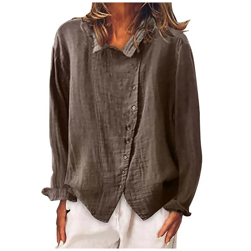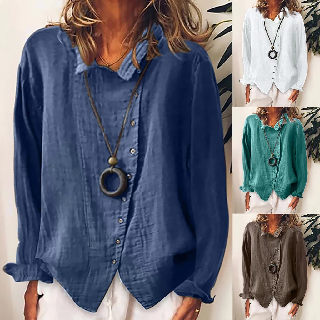 Модная хлопковая и льняная блузка для женщин свободного покроя твердые пуговицы детских костюма с рубашкой с длинными рукавами Блузка размера плюс Топы Blusas Mujer De Moda