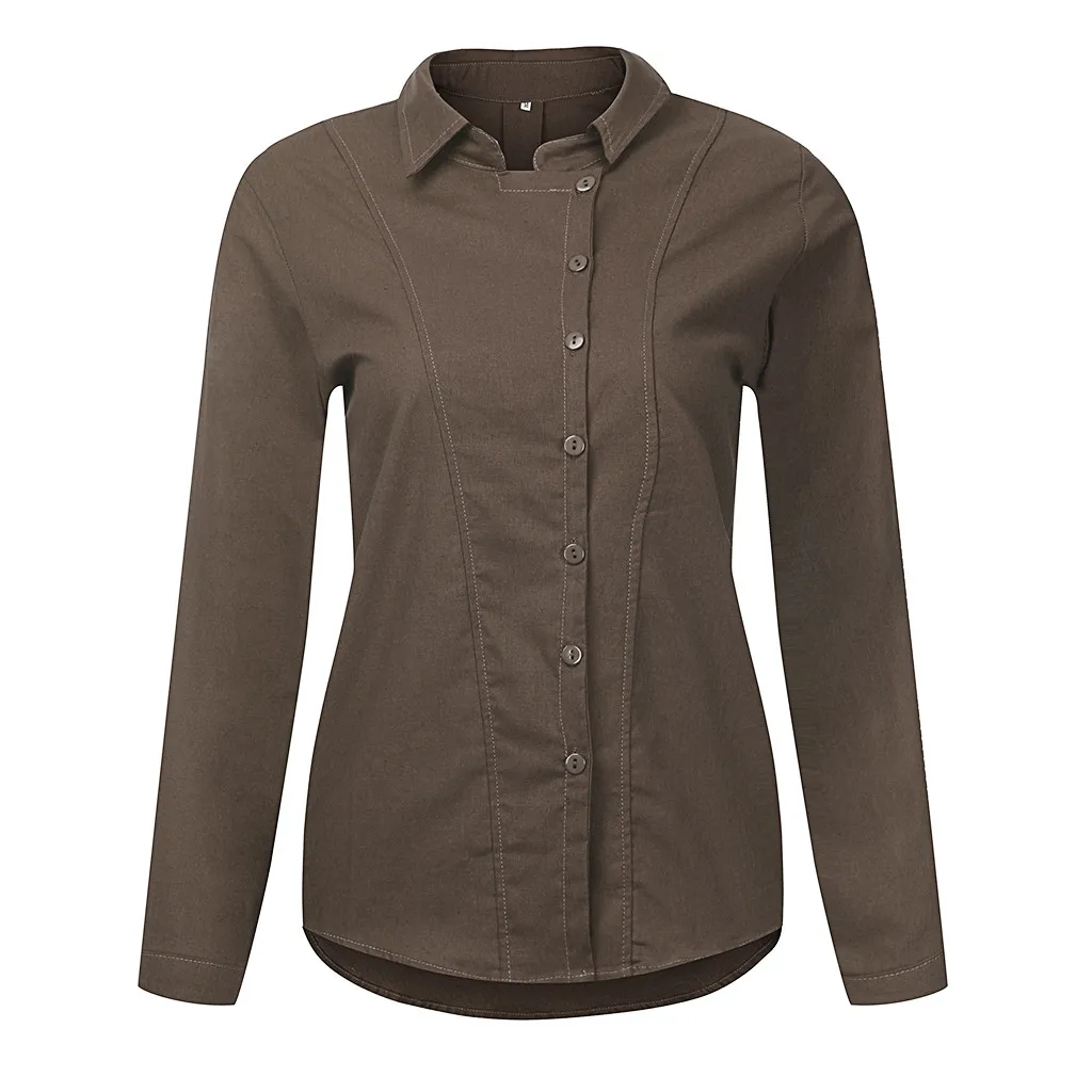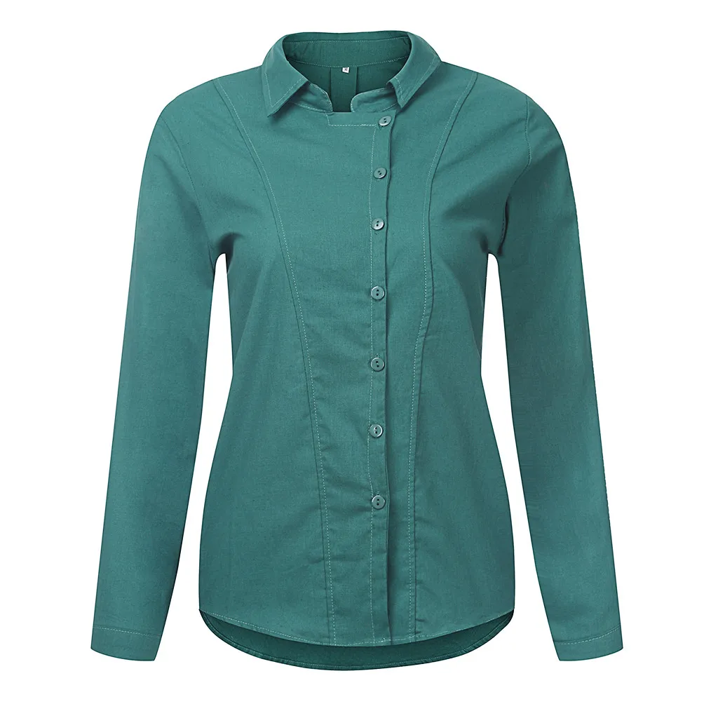 Модная женская хлопковая льняная Повседневная Однотонная футболка с длинными рукавами и пуговицами, топы