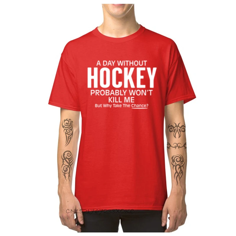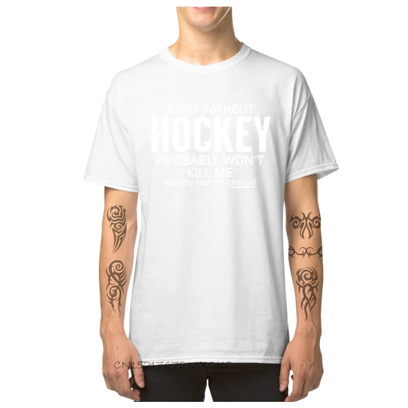 Мужская хлопковая футболка, забавная летняя футболка с круглым вырезом и надписью "A Day Without Hockey жой не убьет меня"
