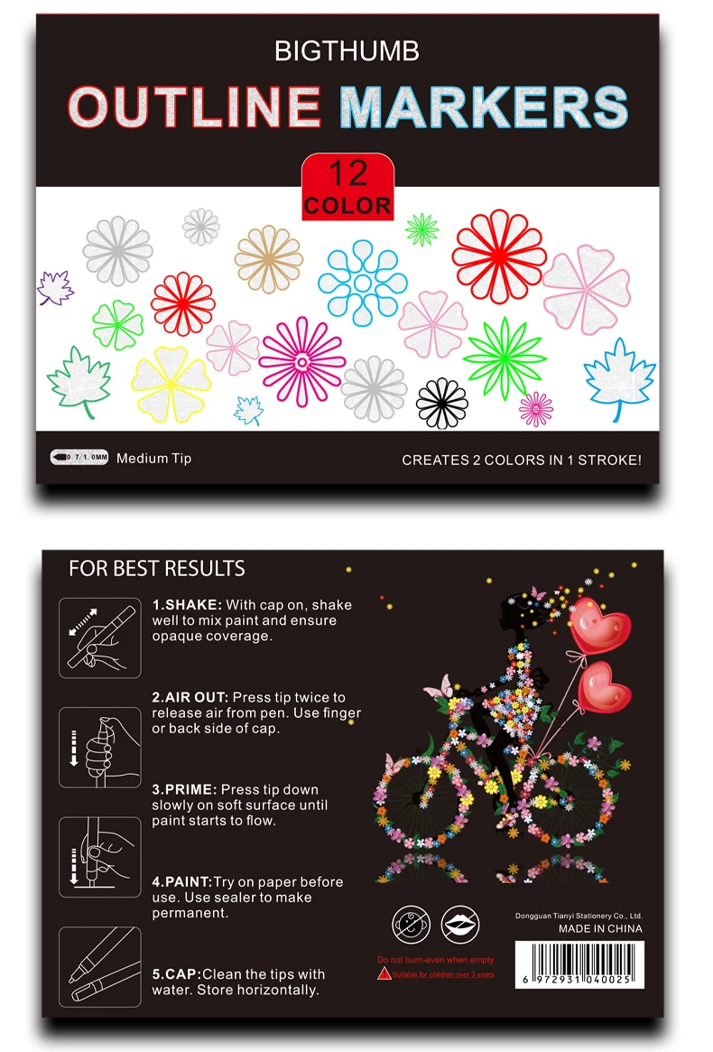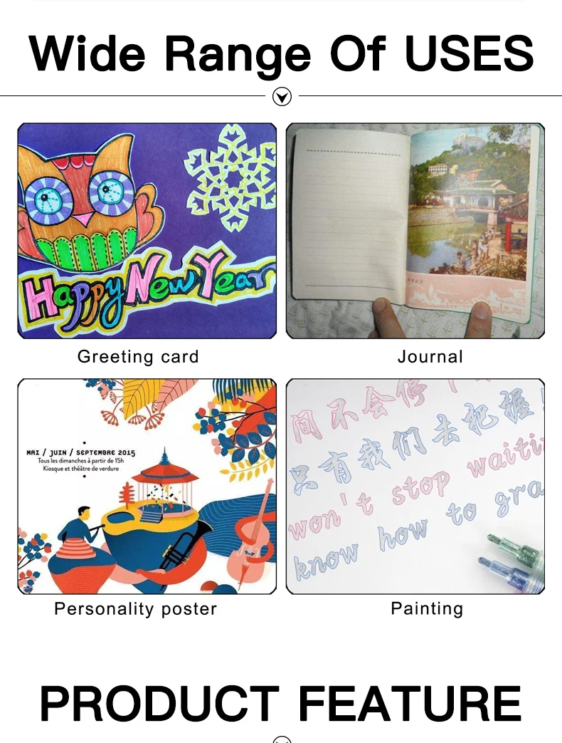 Наименование: двухстрочная цветная контурная ручкаУпаковка: 12 цветов/24 цветаЦвет: как на изображенииРазмер: длина ручки 13,2 см Примечание: чернила легко проникают, чем тоньше бумага, тем легче она проникает. Пожалуйста, обратите внимание, чтобы вставить кусок бумаги под рисунок. Можно рисовать двухстрочными ручками на одежде, стекле, камнях, керамике и других предметах, но стекло, камни, керамика и тёмная бумага не могут отображать двухстрочные эффекты, а только флуоресцентные эффекты.