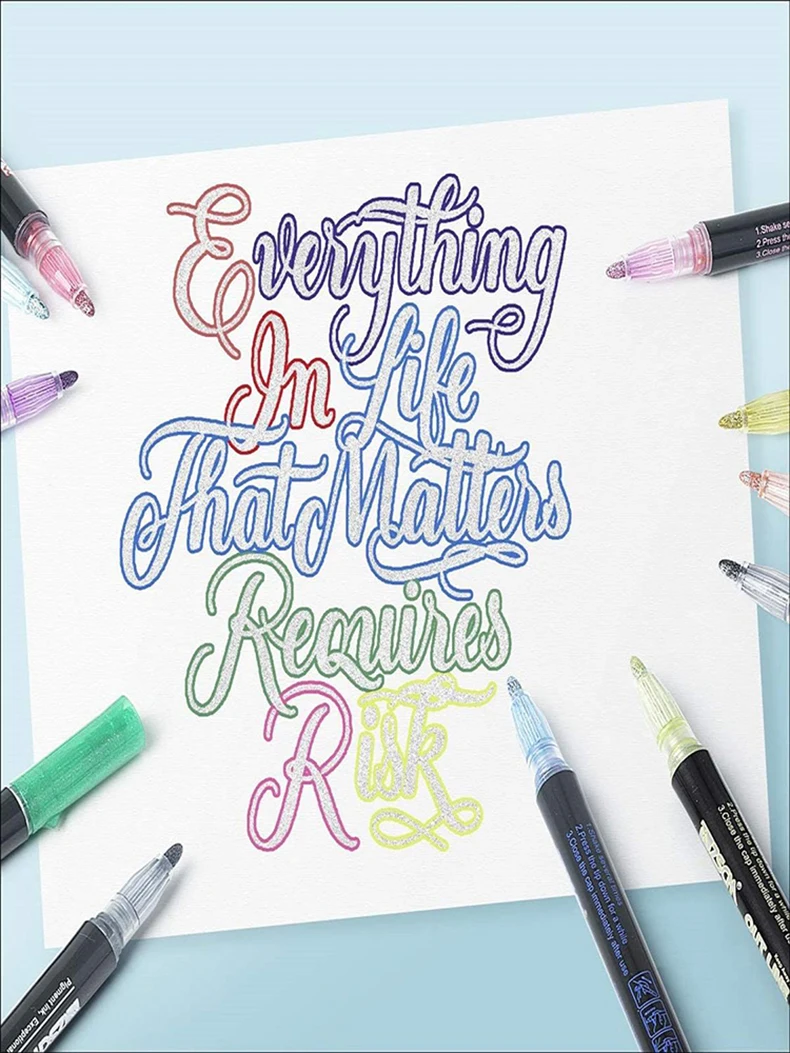 Набор ручек с двойными линиями, 12 цветов, волшебный маркер металли...