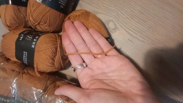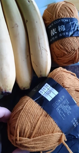 Пряжа очень приятная на ощупь! Мягкая! Правда, я ожидала, что нитка будет толще,а оказалось не сильно толстая. А ещё цвет немного темнее,чем на фото в магазине,но всё равно красиво. В сравнении с бананами можете увидеть контраст. я думала будет горчичный,а больше коричневый. Когда буду вязать,то дополню отзыв. Посылку отправили быстро и дошла за 3 недели в мою глушь:D за это отдельное спасибо!