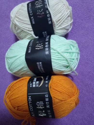 Je suis satisfaite du produit. Le fil est doux, facile à travailler. je pense qu'il est composé à 10% de coton et 90% acrylique ( le descriptif pour l'essentiel est en chinois)