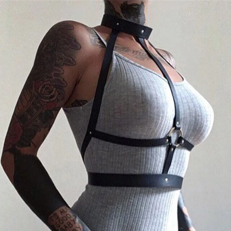 GAMPORL готический панк-бра, женское кожаное нижнее белье, бондаж, подвязки, Чулки с поясом, кроп-топ, подтяжки на груди