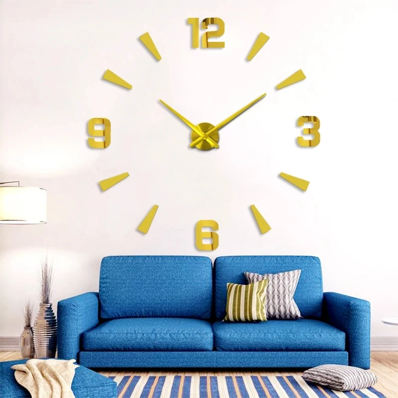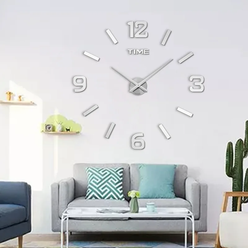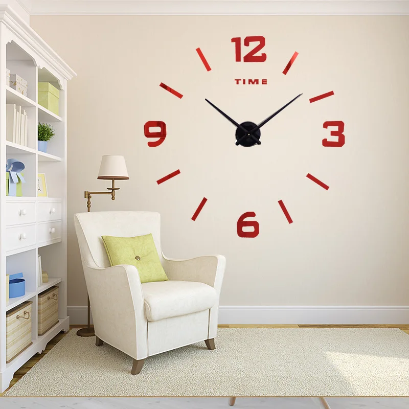 Большие настенные часы 3D современного дизайна, зеркальные металлические настенные часы 47 дюймов, часы для дома, гостиной, украшения сделай сам, настенные часы с наклейками