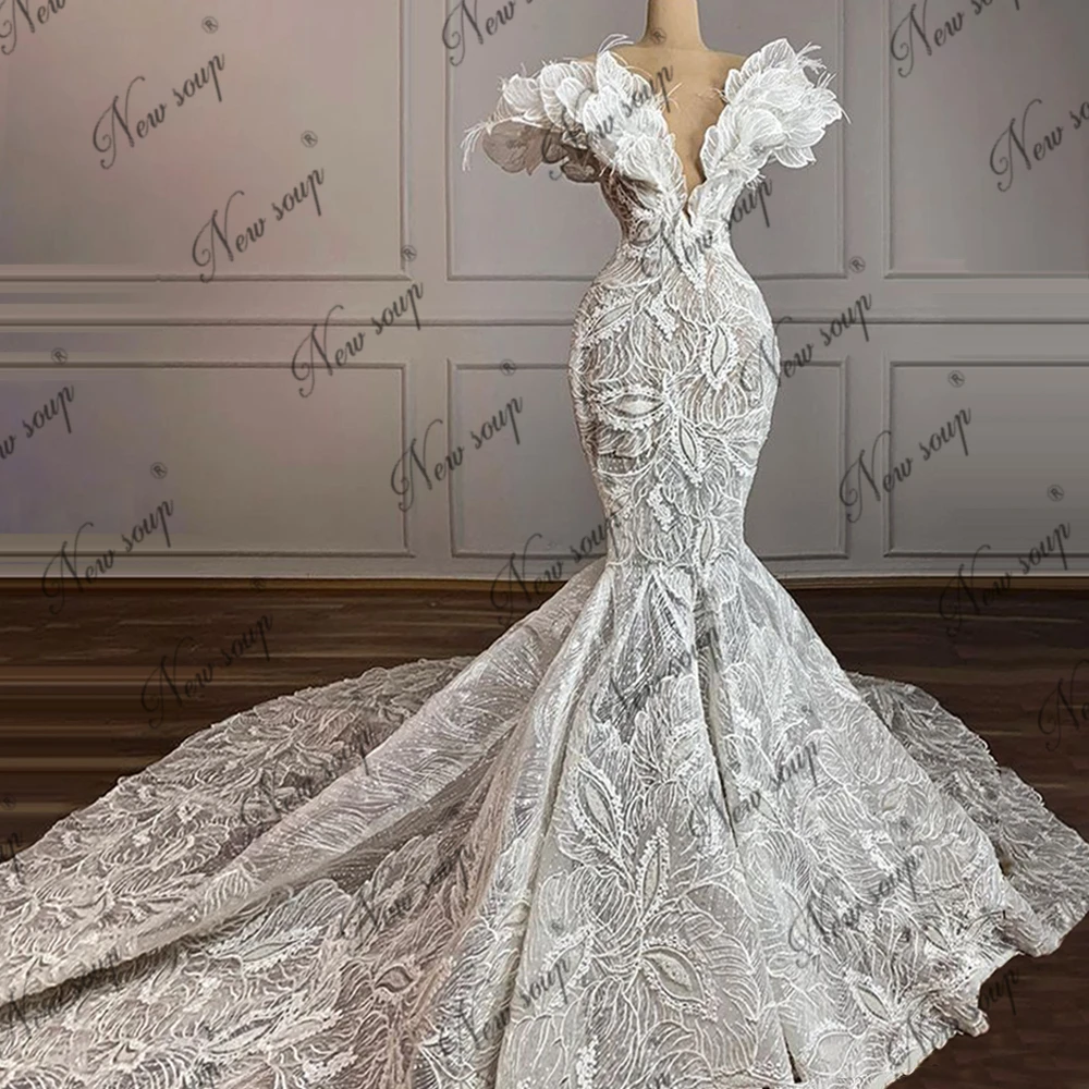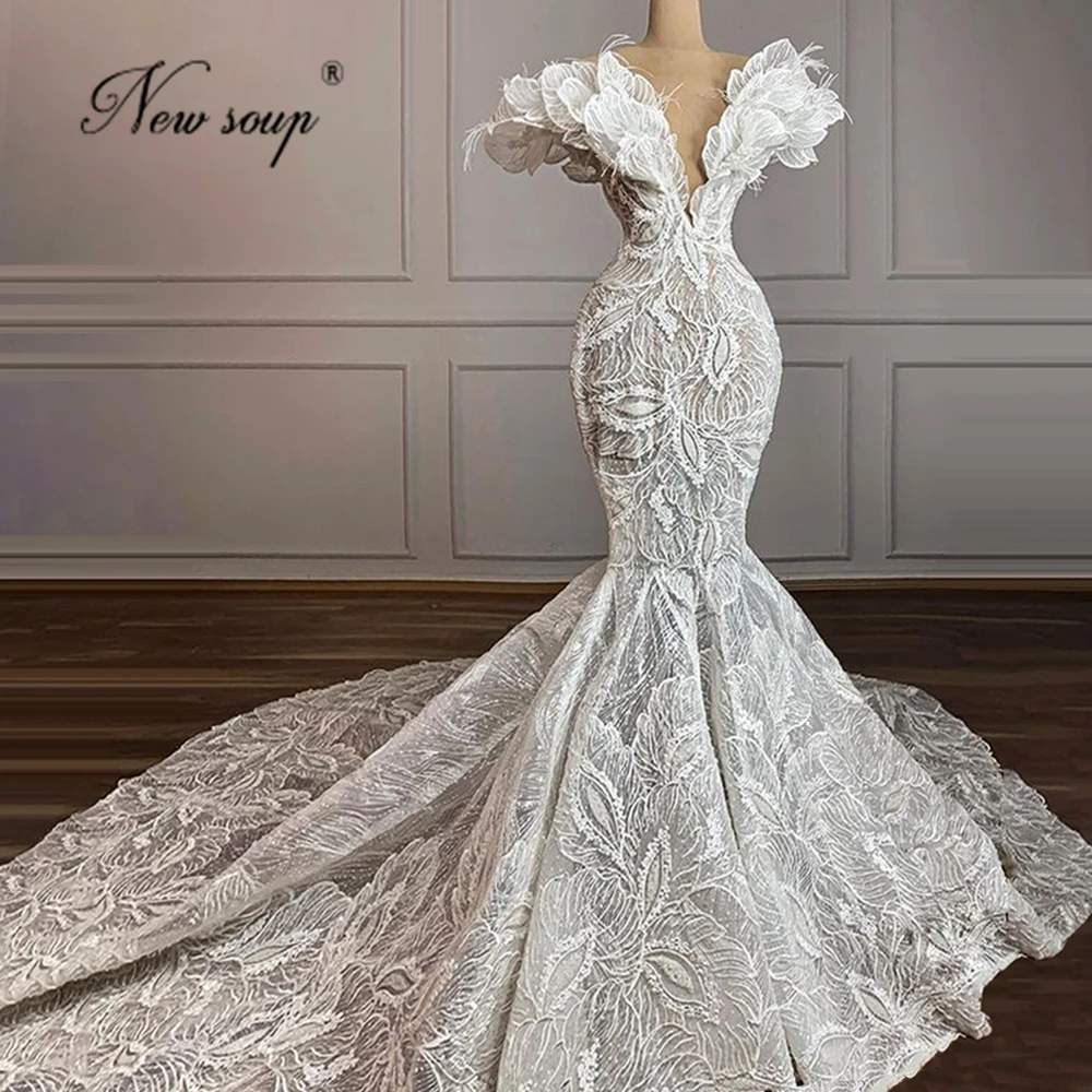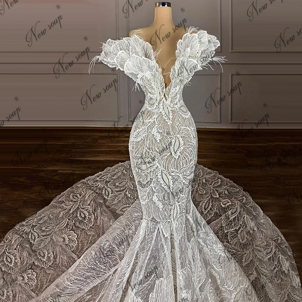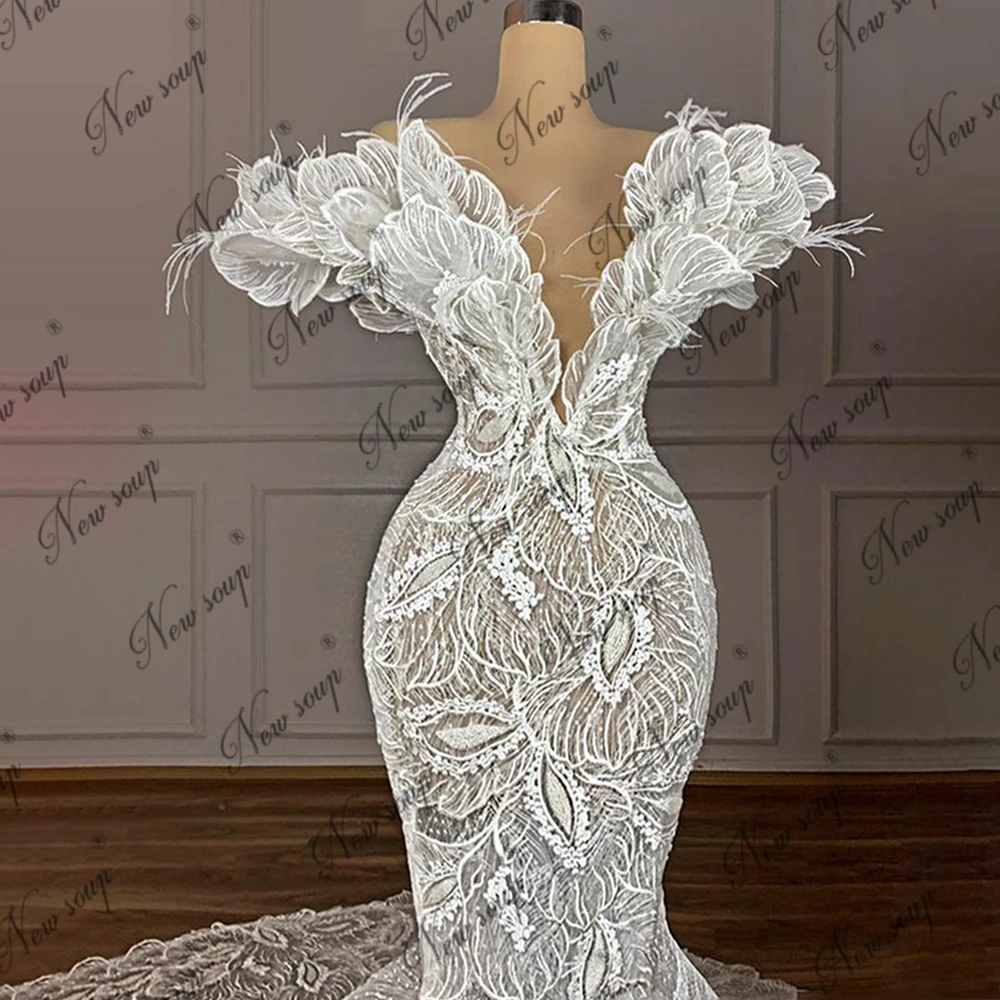 Кружевное Вечернее Платье с V-образным вырезом и перьями