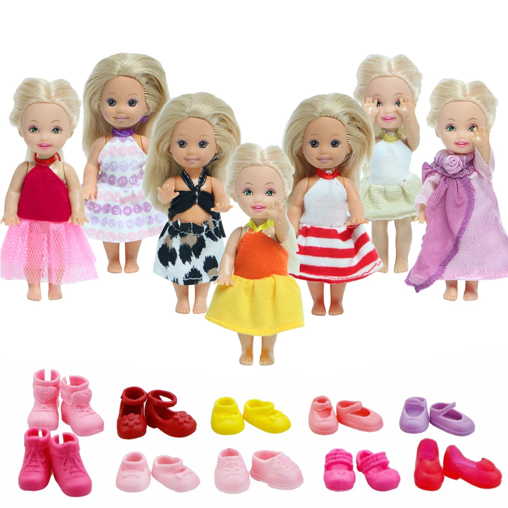 Случайный 10 шт.лот = 5 нарядов, милое платье, юбка, бикини + 5 босоножек, Одежда для куклы Барби, аксессуары для Келли, детские игрушки