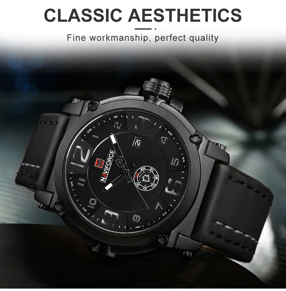 Часы наручные NAVIFORCE Мужские кварцевые, спортивные брендовые аналоговые в стиле милитари, с кожаным ремешком, с датой, 2020
