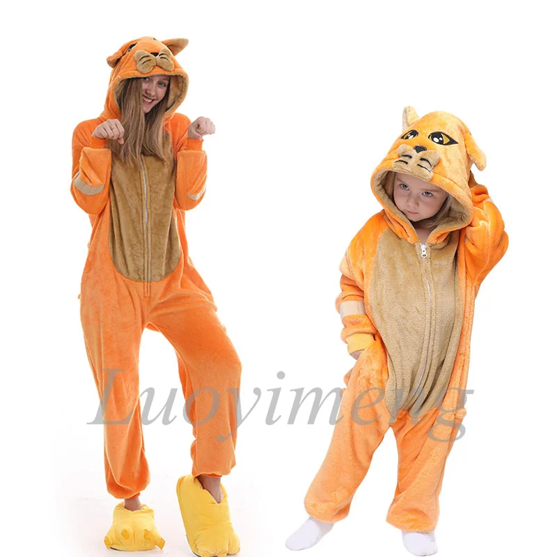Зимние пижамные комплекты с животными, взрослые, дети, кот, комбинезон, фланелевая одежда для сна, кигуруми, единорог, панда, Пижамный костюм, Детские Аниме Костюмы