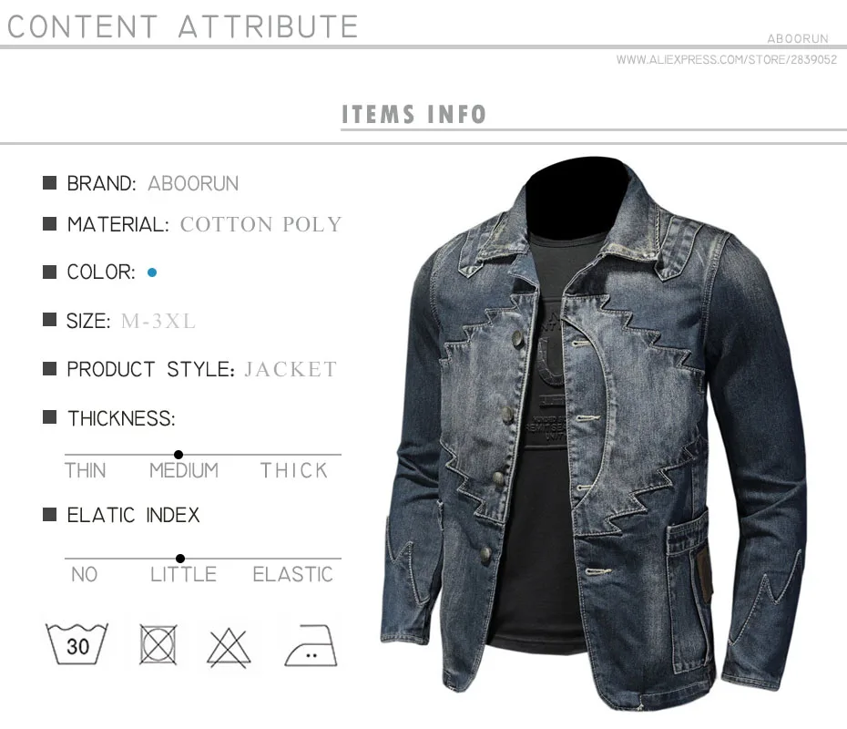 ABOORUN 2021, мужские винтажные джинсовые куртки, облегающее джинсовое пальто в национальном стиле, Осенние хлопковые куртки для мужчин