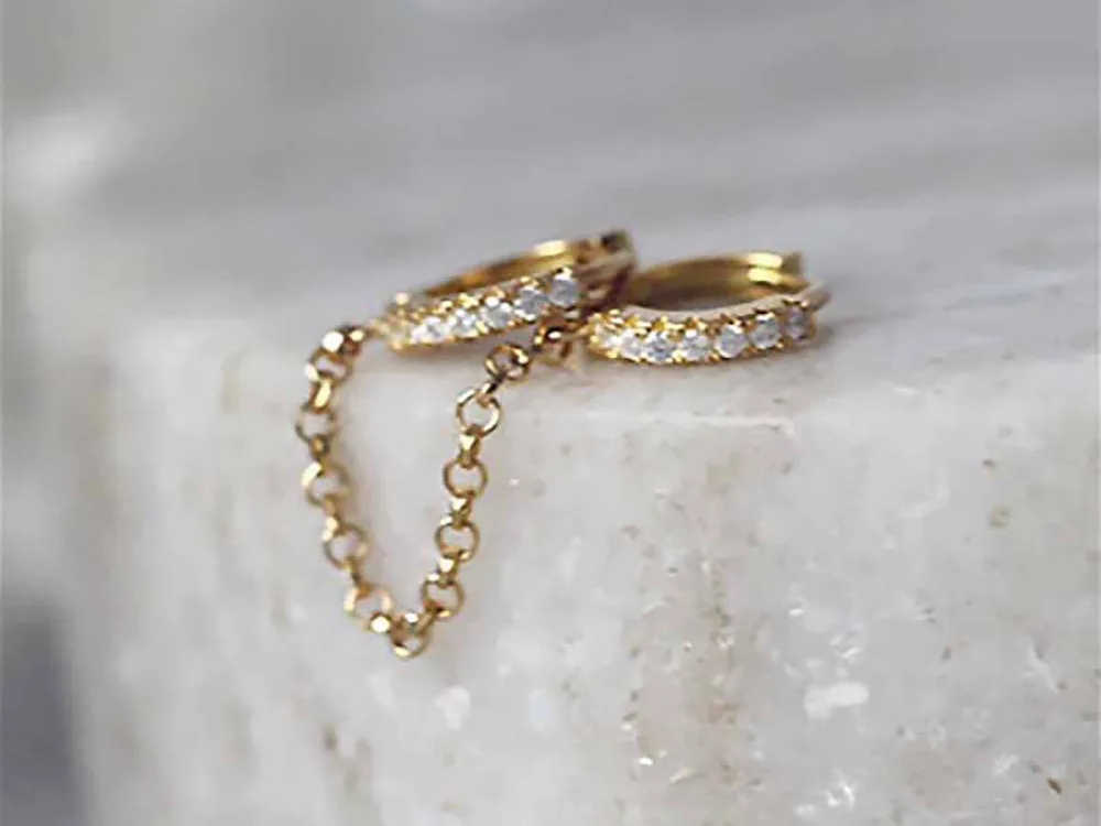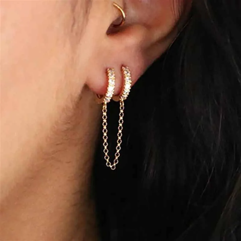 Серьги-кольца с двойным Проколом женские, изящные цепочки с двойным...