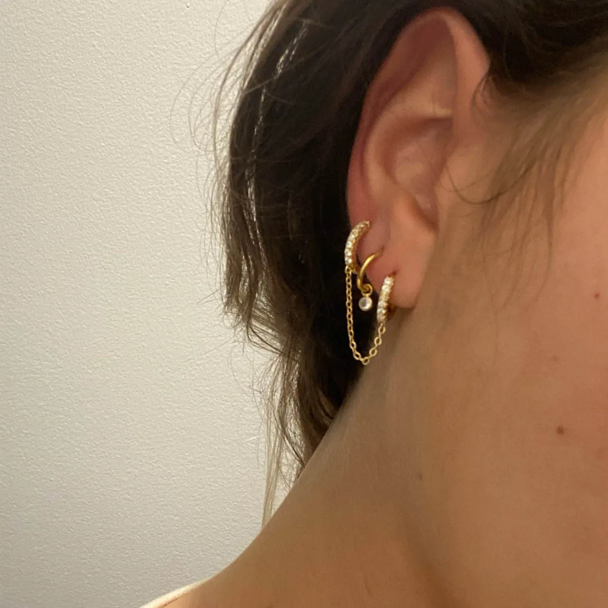 Серьги с двумя отверстиями для ушей пирсинг кольцо серьги цепочка к...