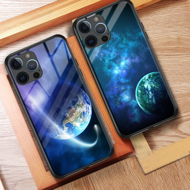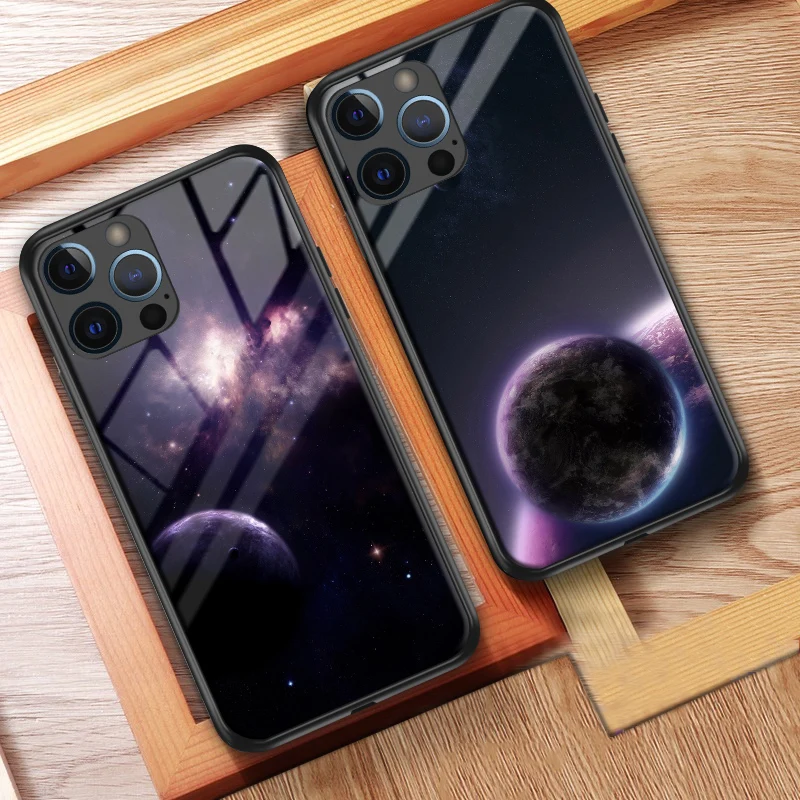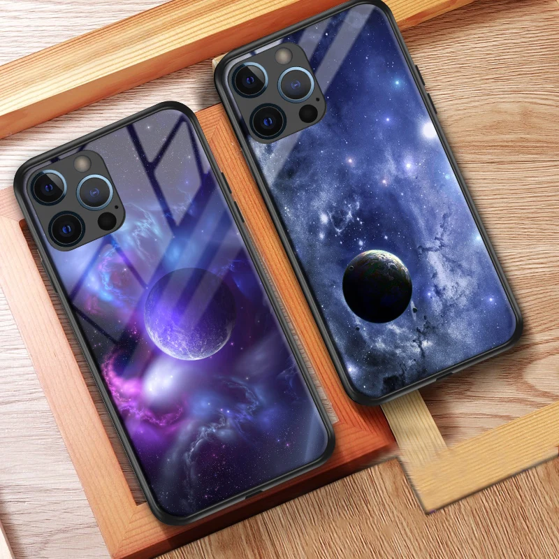 Чехол со звездами для Iphone 11, 12, закаленное стекло, жесткая зад...