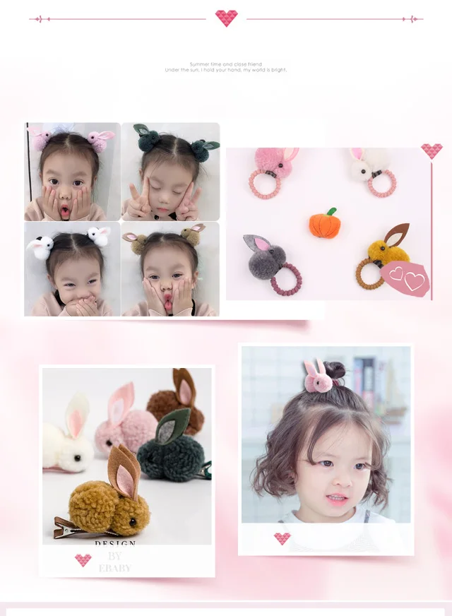 Женская резинка для волос в виде кролика, Модный милый зажим для волос с шариками, Корейская эластичная заколка в виде кролика, Детские аксессуары для волос