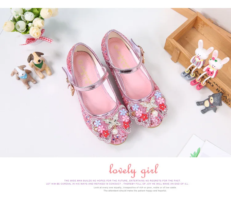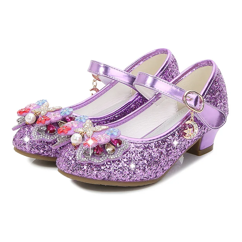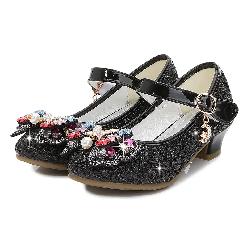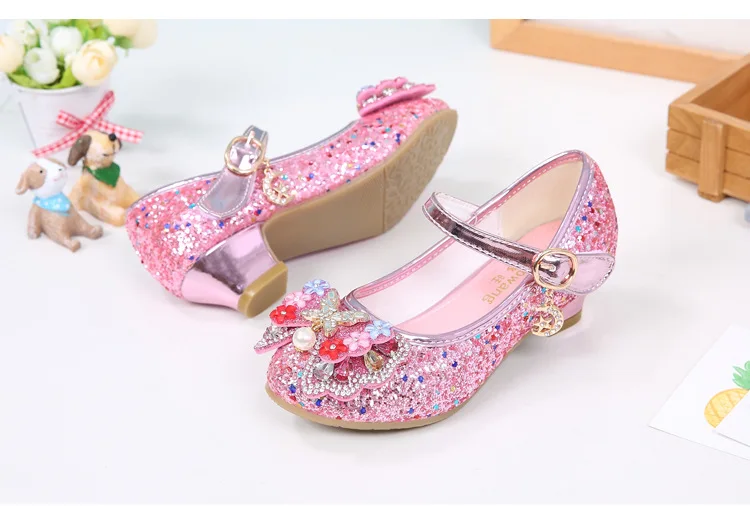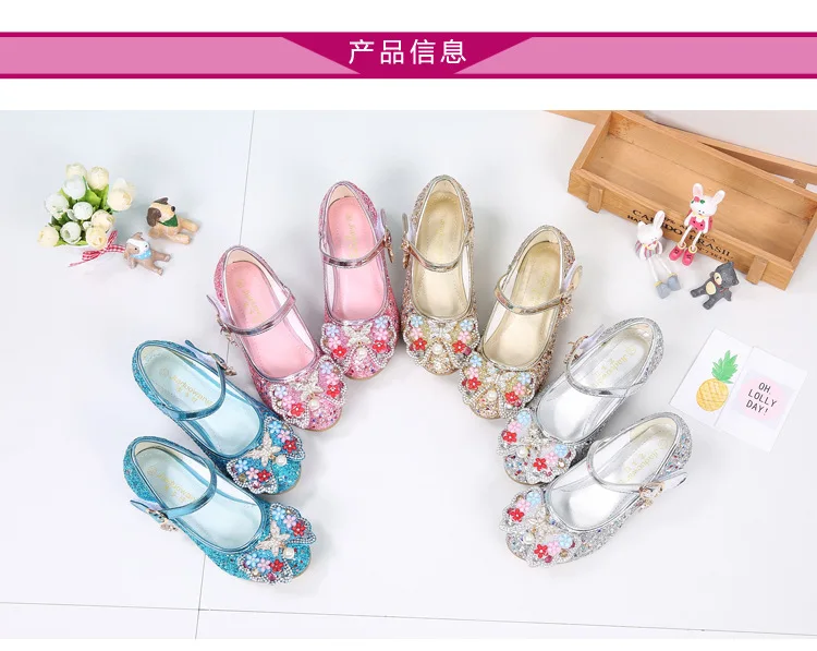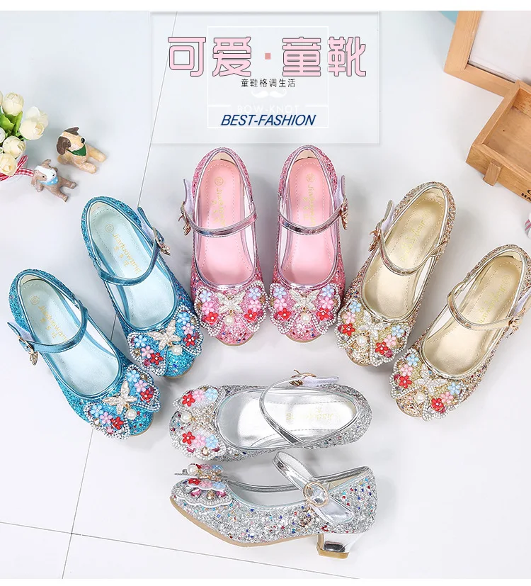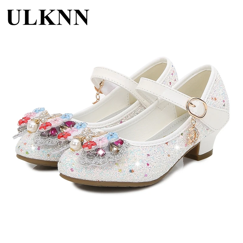 Босоножки ULKNN детские кожаные, с цветочным узором, на высоком каблуке, летние